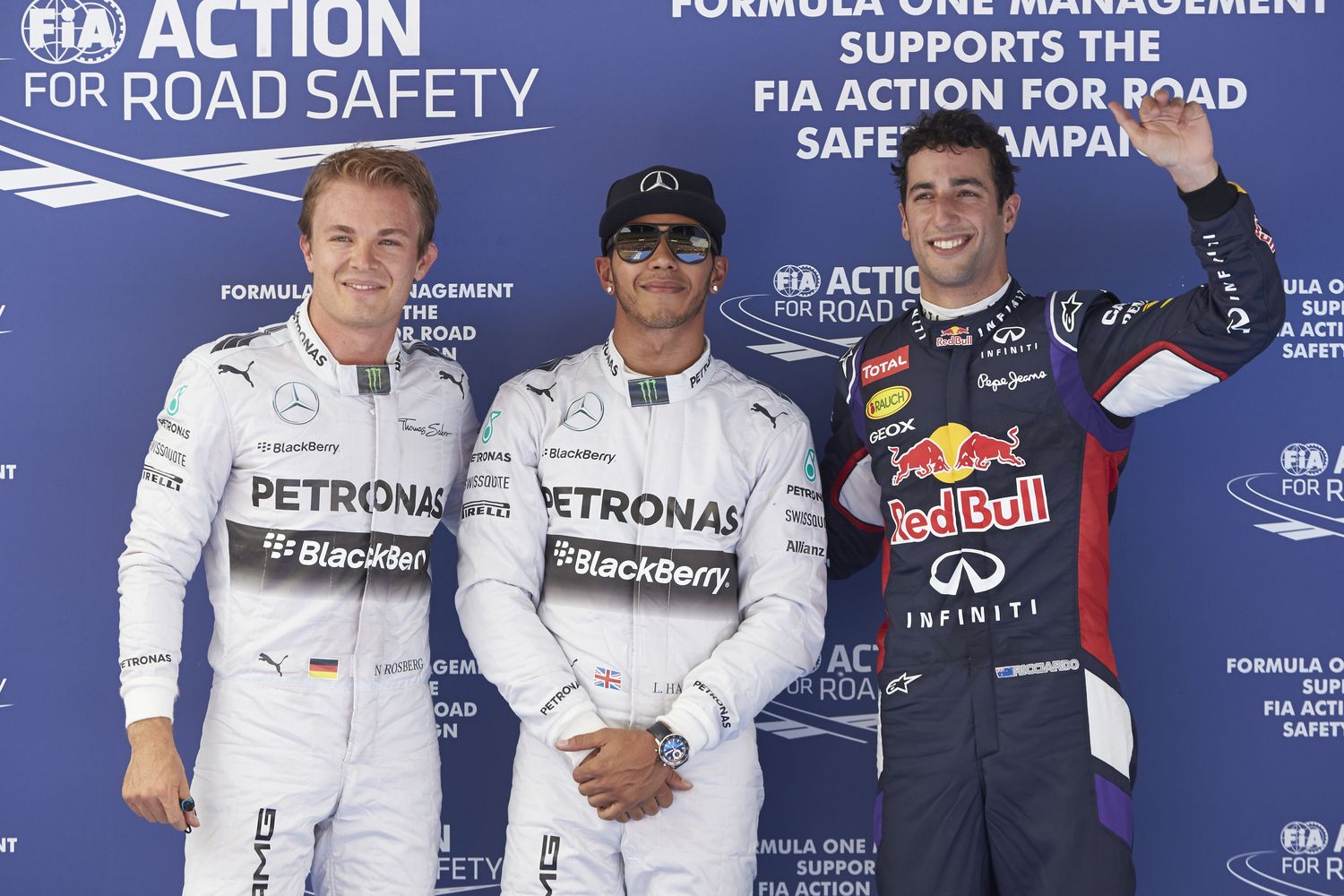 A turbós hibrid Forma-1 ötödik állomásának, a Spanyol Nagydíjnak a szombati időmérőjén Hamilton zsinórban negyedik pole pozícióját szerezte, és szokás szerint megint csak csapattársát, Rosberget megelőzve. A két Mercedes mögött Ricciardo végzett harmadikként, míg a másik Red Bull megmakacsolta magát Vettel alatt, így a négyszeres címvédő mért kört sem mehetett a Q3-ban. Sőt, váltócsere miatt egy büntetést is bezsákolt, és csupán a 15. helyről várta a vasárnapi versenyt. A helyi menő Alonsónak sem volt különösebb oka az örömre, mert Räikkönentől is kikapva csak a hetedik helyre kvalifikálta magát. Bottas negyedik és pláne Grosjean ötödik pozíciója kellemes meglepetés volt, Vettelen kívül Vergne ugyancsak visszasorolással „gazdagodott. Maldonado még a Q1-ben falhoz csapta Lotusát.
