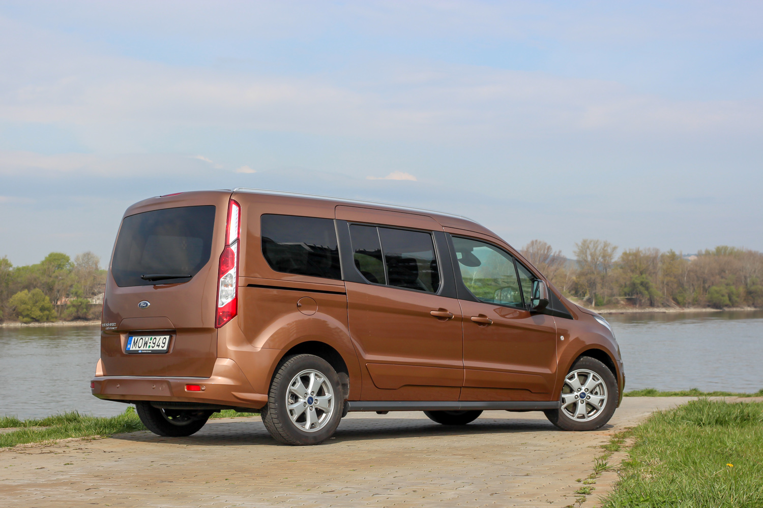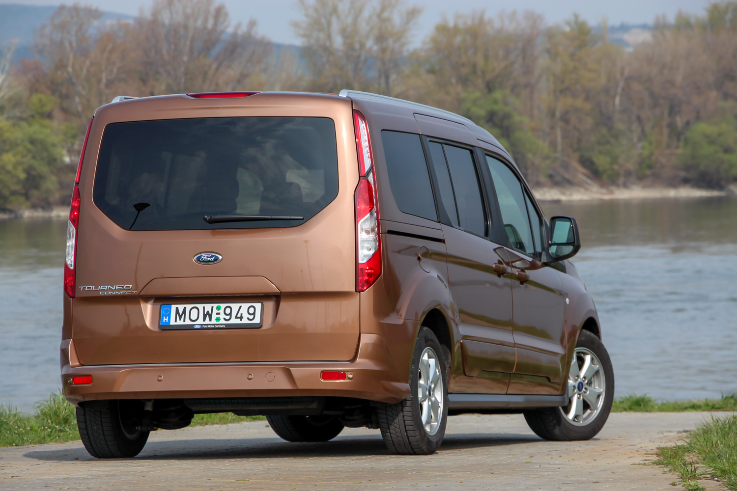 Bár sokaknak fontos lehet utóbbi, el lehet nézni a hiányt, vezethetőségével ugyanis – ahogyan már említettük – a Tourneo Connect jobb, mint amit várnánk tőle. Nem egy élményautó, de kellemesen vezethető, alaposan szervózott kormánya ad némi visszajelzést, elöl MacPherson, hátul – ebben a kategóriában elismerést érdemlő – csatolt lengőkaros futóműve a ballonos 205/60 R16-os abroncsokkal kényelmes; kanyarodási oldaldőlés természetesen van. Autópályán jó az egyenesfutás, a karosszéria magasságából adódóan természetesen számolni kell a szélérzékenységgel. Ami viszont meglepő, az a csekély zajszint, a Tourneo Connect még 130 km/órás tempónál is egészen csendes, igaz, akkor már olyan mértékben tolja a levegőt maga előtt, hogy azt szinte érezni lehet, s természetesen a fogyasztást is 7 liter fölé viszi. Érdemes picit lassítani, 120 km/órás tempónál sokkal kezesebb és stabilabb a karosszéria, takarékosabb a hatodik fokozatban csak 2000 1/percet forgó motor. A gyári 4,9 l/100 km vegyes érték így is elérhetetlennek tűnik: városban nálunk 7,5 literes átlag adódott, majd sok-sok 120 km/órás autópályázással apadt 6,5 literig a tesztátlag. Ez abszolút értékben már nem rossz, csak a gyári ígérethez mérten az.