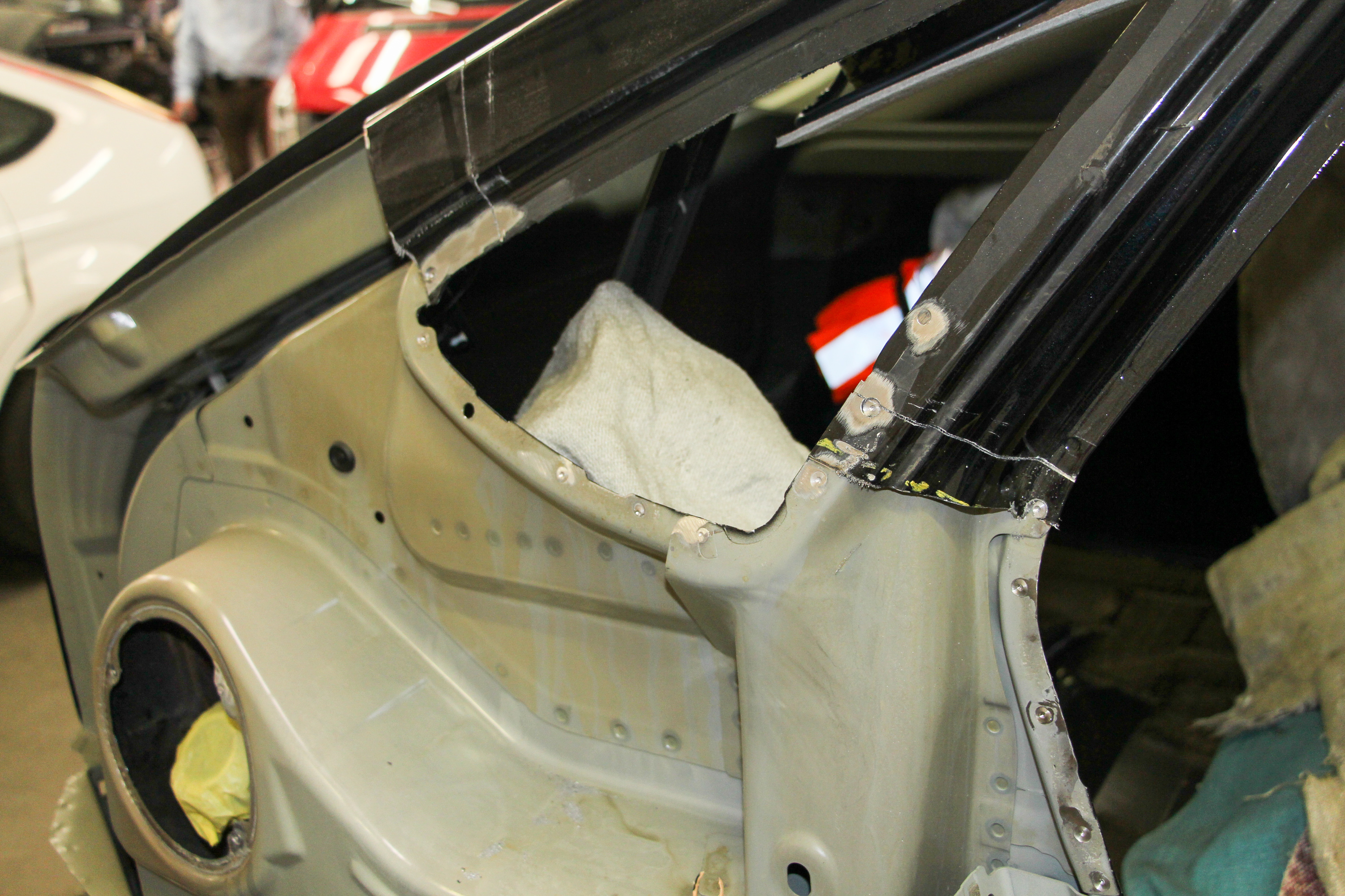 Nem kellett ott lennie, én a képekből megmondom Önnek, hogy pl. nem lett lekezelve, tehát a javítás nem a technológiai előírások szerint történt. Egy márkaszerviznek ezeket kutya kötelessége (lenne) betartani, nyílván ezért van kint az emblémája! És honnan veszem ezt? Mivel le szoktam kezelni a felületet ponthegesztés előtt, ez kívülről meglátszik a vágások mellett (a megmaradt oldalakon), ugyanis a külső részeket nem maszkolom ki – és senki sem, aki ezt így csinálja – csak a belső részekre szoktam odafigyelni, hogy ne fújjak össze semmit. A külső részt úgyis átdörzsöli utánam a fényező kolléga. 🙂