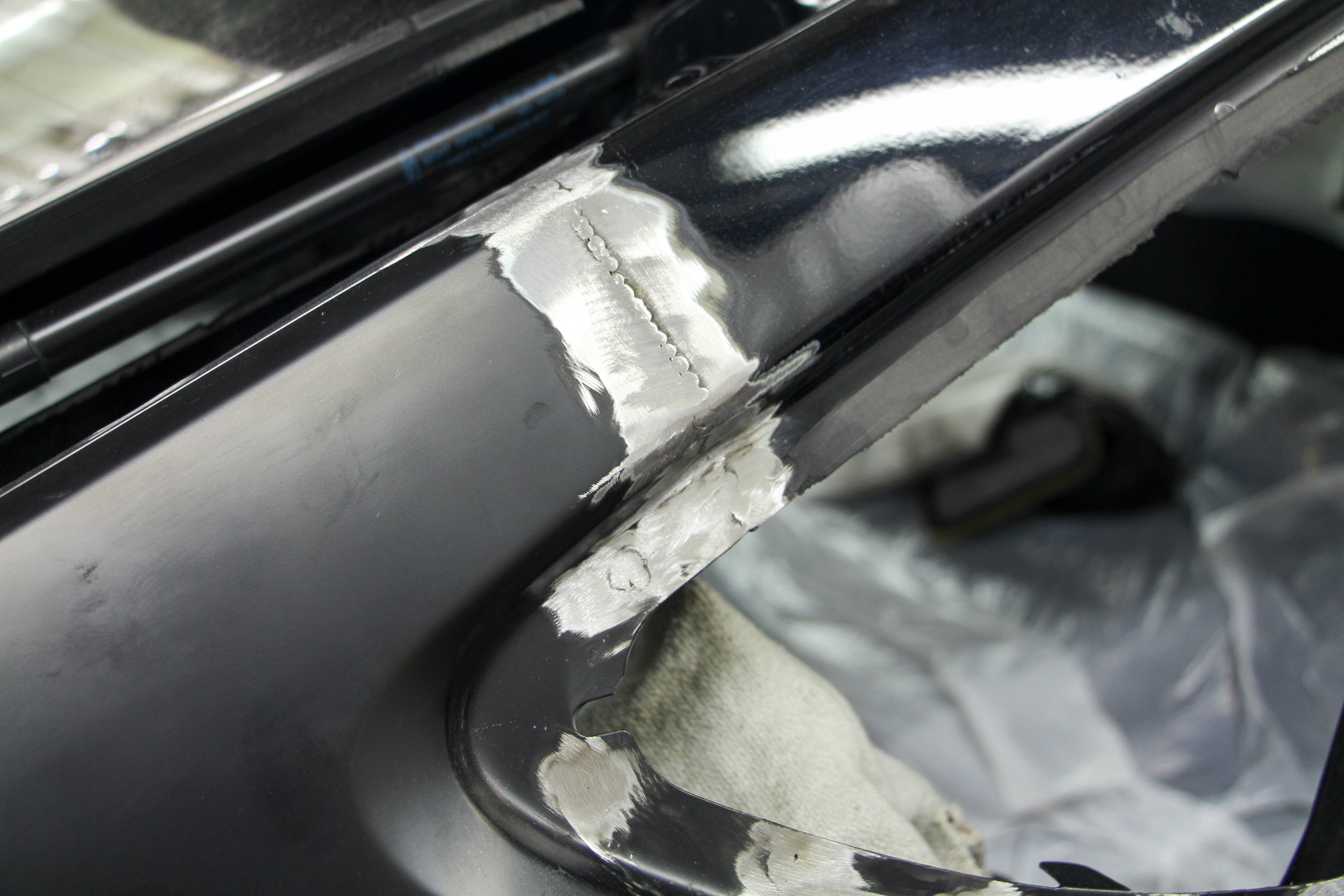 Fényezés előtt jól kivehető az új és a régi elemek illesztése, ez azonban a munka végére teljesen eltűnik
