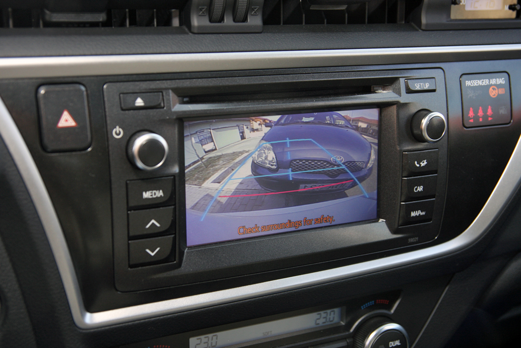 Ilyen kék emblémás és vonzó gyöngyházfehér fényű csak a hibrid Auris lehet. A tolatókamera az első-hátsó radarokkal és az automata parkolási rendszerrel együtt vigyáz arra, hogy sokáig ép is maradjon a kasztni