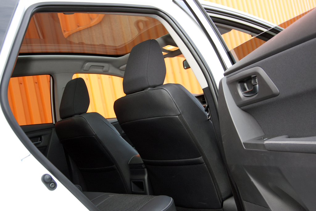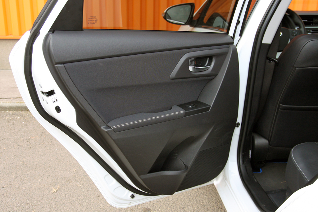 Átlagtermettel hátul is kényelmes az Auris Hybrid utastere, az akkumulátor a második sor alatt bújik meg. Az elöl fűthető, a vezetőnél elektromos deréktámaszos ülés jó átlagos. Ezek, illetve a velúr/bőrkárpit is a Lounge felszereltségi szint sajátja