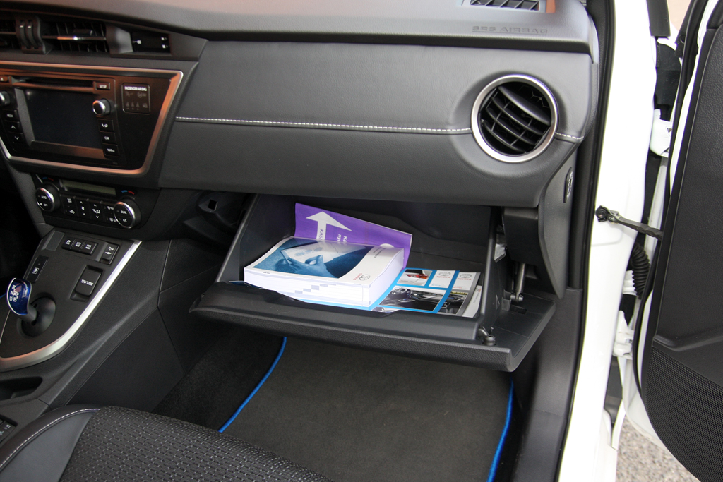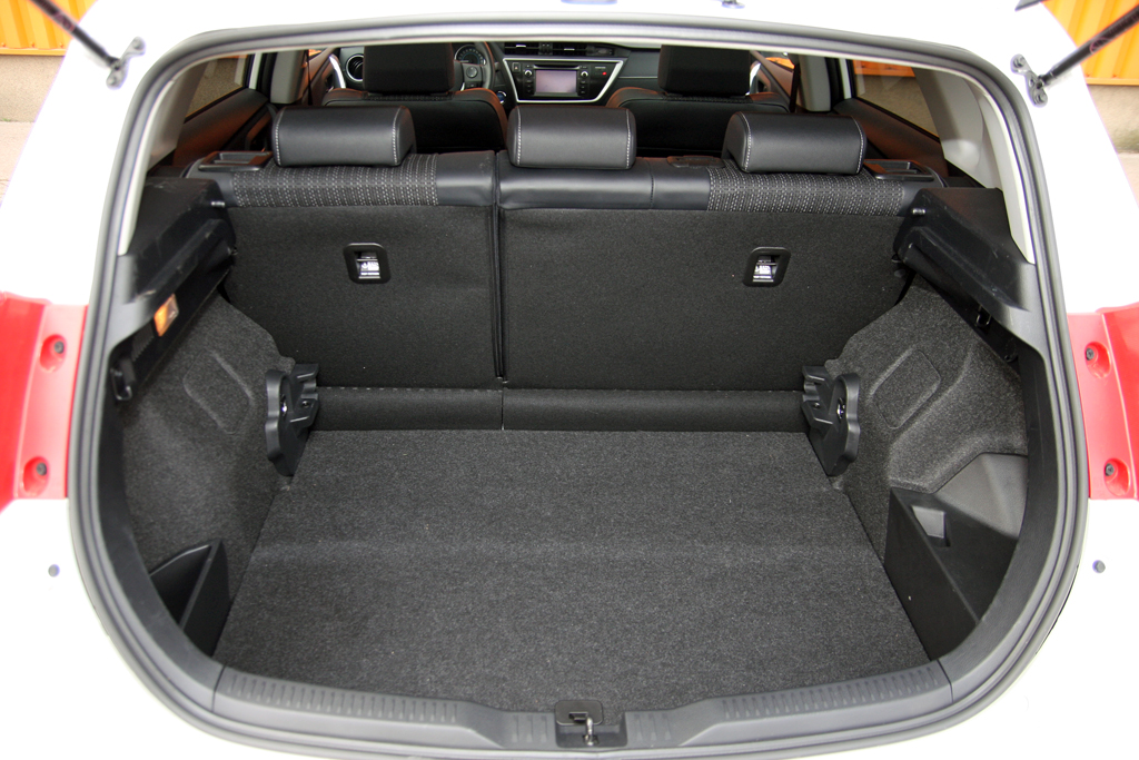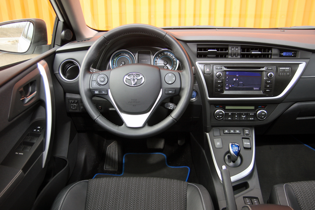 Remek, hogy a nikkel-fémhidrid akkumulátort a jó széles nyíláson át pakolható csomagtartóból az ülés alá biggyesztették, így a raktér ezen Auris esetében is 360 literes, minimálisan kisebb annál, mint amennyit az Astra vagy a Golf kínál. Némi okosítással az utastér helykínálata is javult, ráadásul az ülések 4 centis süllyesztése (a magasságcsökkentéssel és az akkumulátor előrébb hozásával együtt) alacsonyabb súlypontot, jobb tömegeloszlást és vezethetőséget is eredményezett.