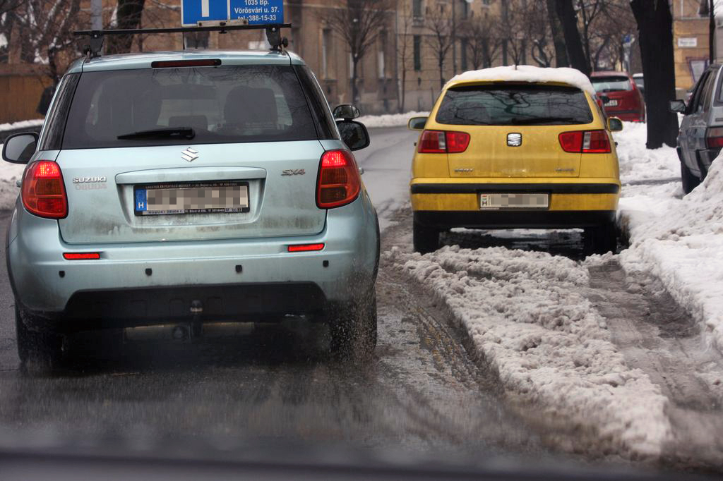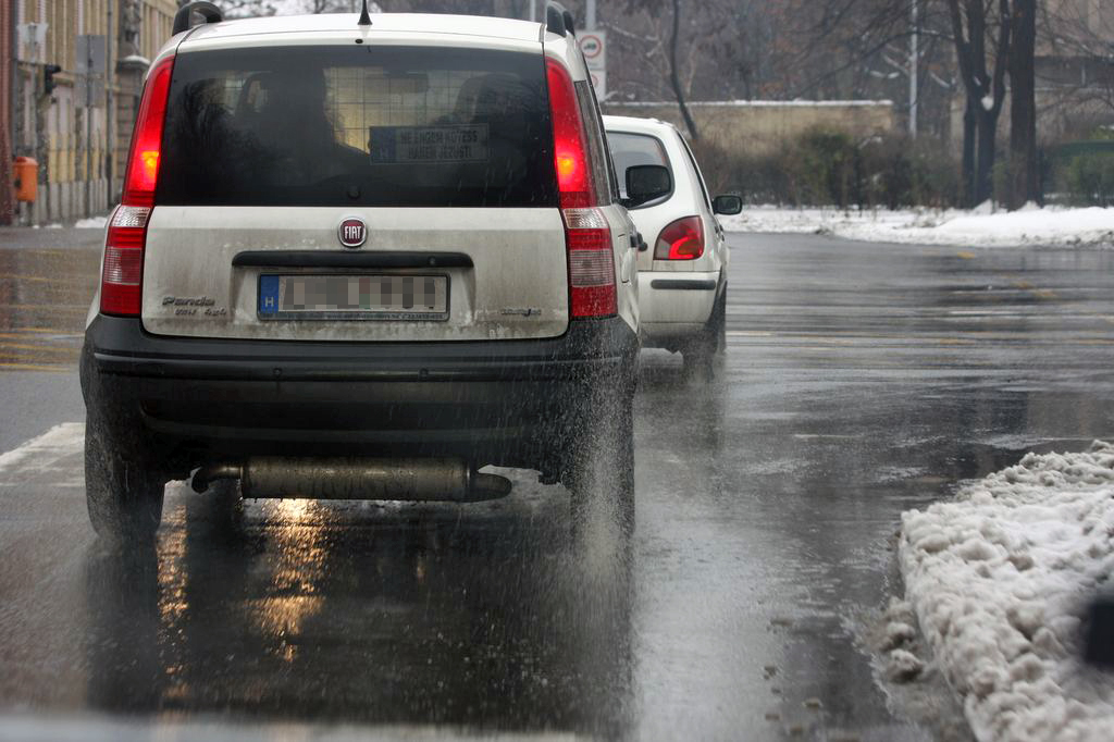 A nedves út továbbá nem csak a gyalogosok és a többi autós miatt követel extra követési távolságot és óvatosabb tempóválasztást, hanem azért is, mert a nedves nem biztos, hogy csupán nedves, lehet épp jeges is. Nappal vagy a városokban hiába van fagypont feletti hőmérséklet, lakott területen kívül, éjszaka vagy a hegyekben akár nappal is bele lehet futni talajmenti fagyokba, így nem ritkán előfordul, hogy míg a városban minden latyakos és vizes, addig a városhatár után, pláne némi szintkülönbséggel, a csillogó út már jeges útfelületet jelent. Még inkább előfordulhat a hét utolsó napjaiban, amikorra a mostaninál mintegy 10 Celsius fokkal hidegebb időt jósolnak a meteorológusok. Akkor már nem csupán a felvert víz, hanem a komoly balesetveszély elkerülése érdekében is ajánlott lesz a visszafogottabb tempó és a fokozott követési távolság – városon kívül és belül egyaránt. Gondoljon erre mindenki, amikor visszafogottan poroszkáló autóst lát, inkább hunyjunk szemet a túlzott óvatosság felett, mintsem hogy amiatt mi túlvállaljuk magunkat, s okozzunk azzal balesetveszélyt magunk és adott esetben az épp túlzottan óvatos autós számára.