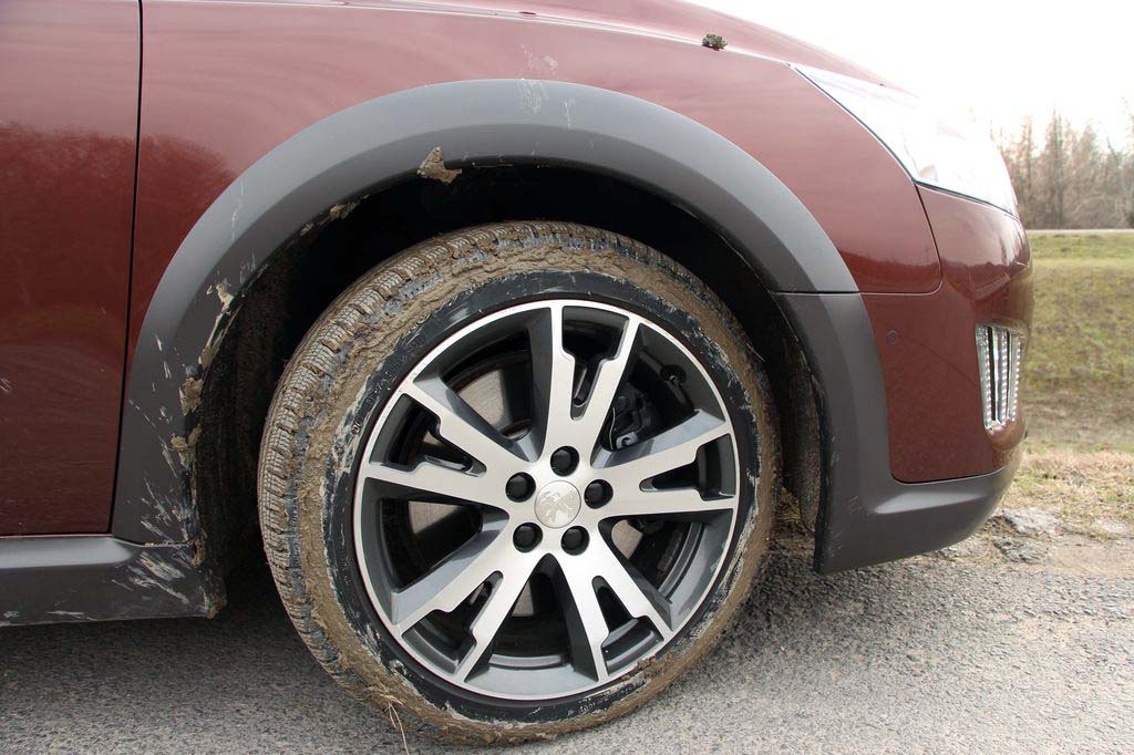 Inkább kecses kombi, mint szabadidő-autó. Nem hivalkodó, de emelt hasmagasságú, a szokott Peugeot-feliratot rejtő hűtőmaszkkal