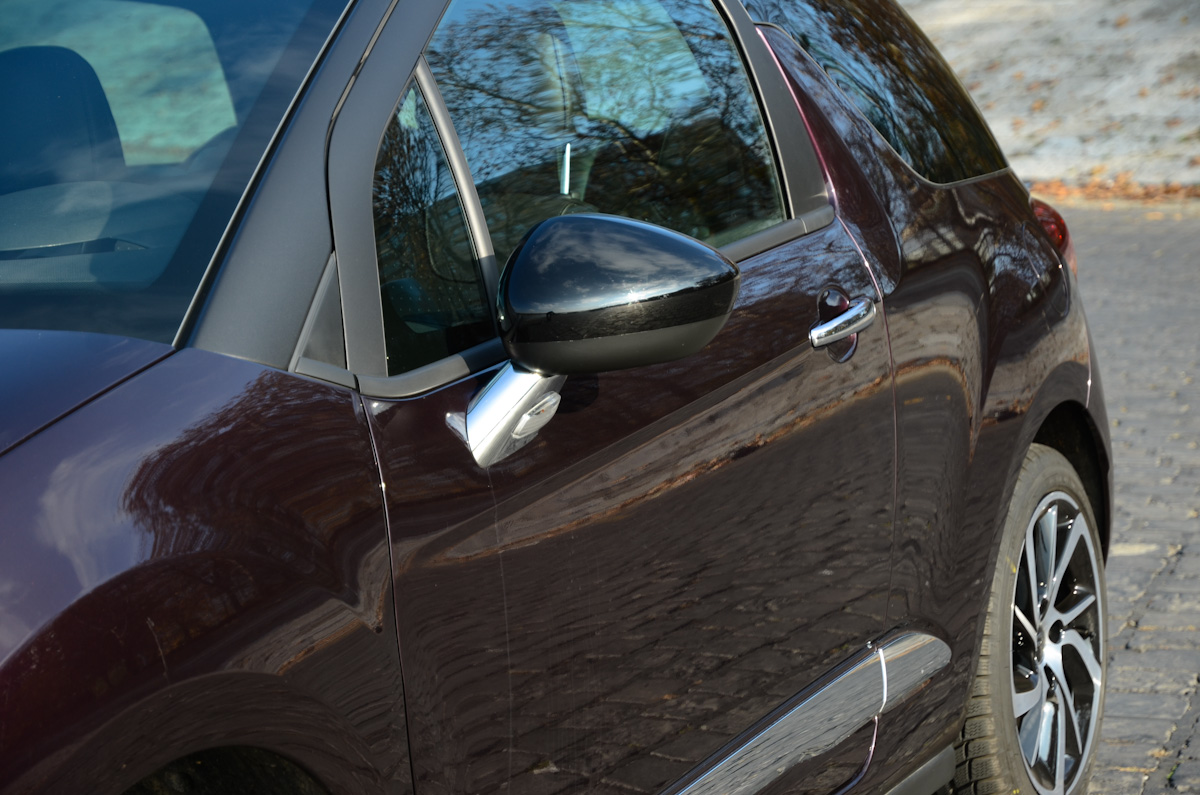 Megfordulnak utána. A külső a felemás színű karosszériának köszönhetően már eddig is egyedi volt. Az eddig is sportos és dizájnos megjelenésre még egy lapáttal rátettek a franciák. Az első és hátsó LED-es lámpák, a szürke oldalsó díszlécek, a krómkeretes hűtőmaszk és a részben fekete felnik igazán különleges megjelenést kölcsönöznek a kis Citroënnek. A dupla króm kipufogó már csak hab a tortán. Egyik alkalommal az utcán huzamosabb ideig parkolva és az autóban várakozva azt vettem észre, hogy sokan visszafordultak és nézték meg tüzetesebben az autót. Nem véletlen, valóban vonzza a tekintet a DS 3, még így is, hogy kevésbé kirívó a fényezése.