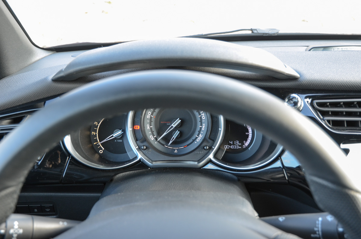 Induljunk el. Az első kellemetlen meglepetés a biztonsági öv bekapcsolásakor ért. Annak ellenére, hogy viszonylag hátratolt üléshelyzetben vezetek, meglehetősen nyújtózkodni kellett, hogy elérjem. Ebben a felszereltségi változatban és árkategóriában már elvárható lenne, hogy egy kar előretolja nekünk a csatot. A kuplung és a váltó egy hajszálnyit hosszú úton jár, utóbbi tökéletesen kapcsolható és jó fogású. A motort beindítva kellemes, morgós dízelhang fogad. Elindulva a váltófokozat-jelző 2000-nél már követeli a következő sebességet. A kormány nagyon közvetlen, ez egy kis megszokást igényelt, később már nem volt vele gond. A futómű sportos, de nem annyira, hogy szétrázza az autót és a belső szerveinket. Halkan nyeli el az úthibákat, egyedül egy-egy nagyobb keresztborda üt hangosabban. A fékek jól adagolhatóak. Hamar rá lehet érezni a kis Citroën vezetésére, 1,5-2 óra után úgy tűnt, mintha mindig is ezt az autót hajtottam volna.
