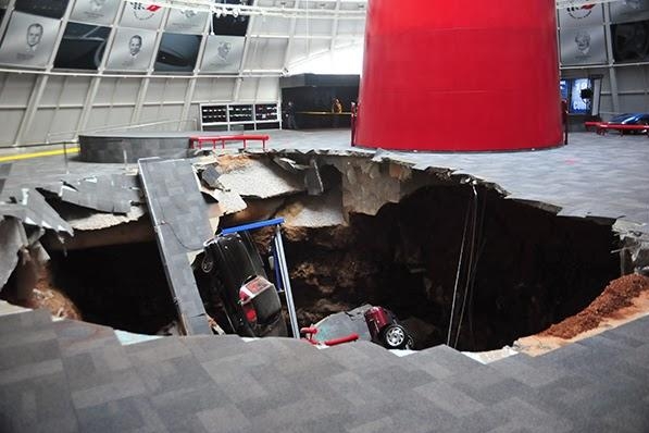 Nyolc ritka, kiállítási sportautó zuhant bele szerda reggel a Nemzeti Corvette Múzeumban (National Corvette Museum) beszakadt víznyelőbe a Kentucky állambeli Bowling Greenben – adta hírül az MTI. A balesetben senki sem sérült meg, az anyagi kár azonban több mint jelentős. A 12 méter átmérőjű, 6-9 méter mély gödör a múzeum Skydome elnevezésű épületében keletkezett. A létesítmény nem fogad látogatókat, a múzeum épületeinek szerkezetét statikusok vizsgálják.