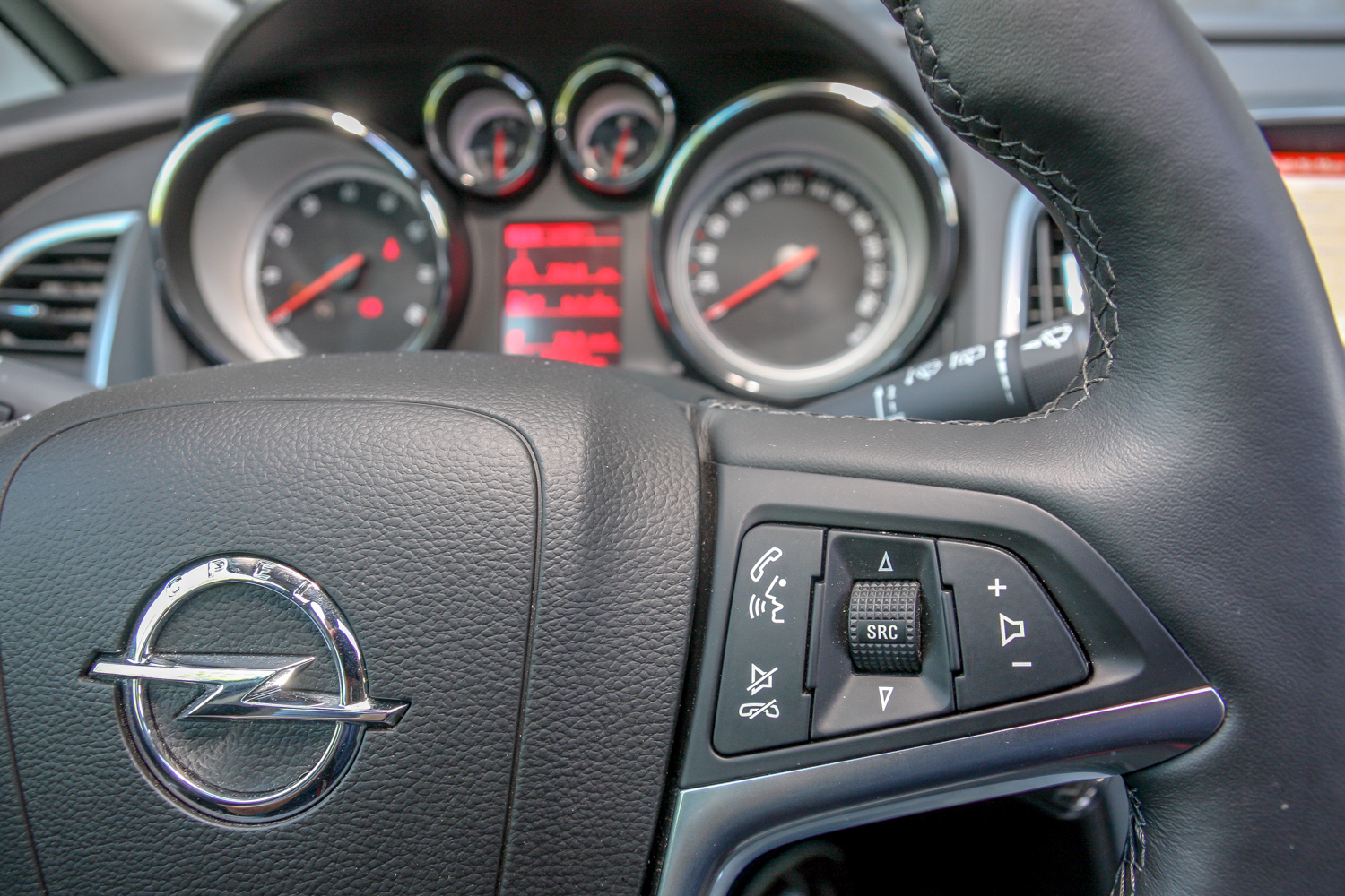 Bent Perforált Mondial Jet Black bőrkárpitba burkolt, elöl fűthető, elektromos állítású, comb- és gerinctámaszos sportülés várja, hogy eltespedjék benne az ember. Vöröses hangulatvilágítás is akad, hurrá. A kormány nem apró, cserébe egy csomó gomb van rajta, ahogy egy csomó gomb csoportosul a középkonzolon is – ez még a régi Opel-iskola. Én személy szerint jobban kedvelem ezt, mint az újat, a frissített Insigniában bevezetett „letisztultabbat” a bénácska egérpadjával, de tény, hogy a csilivili vetített műszerfalak és a középkonzolon is lehetőleg óriási monitorok korában ez az Astra-szint egyeseknek már avíttasnak tűnhet.