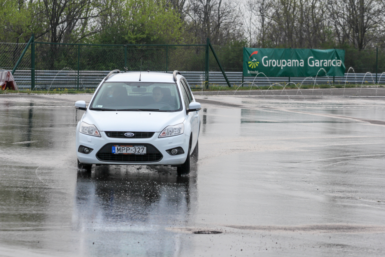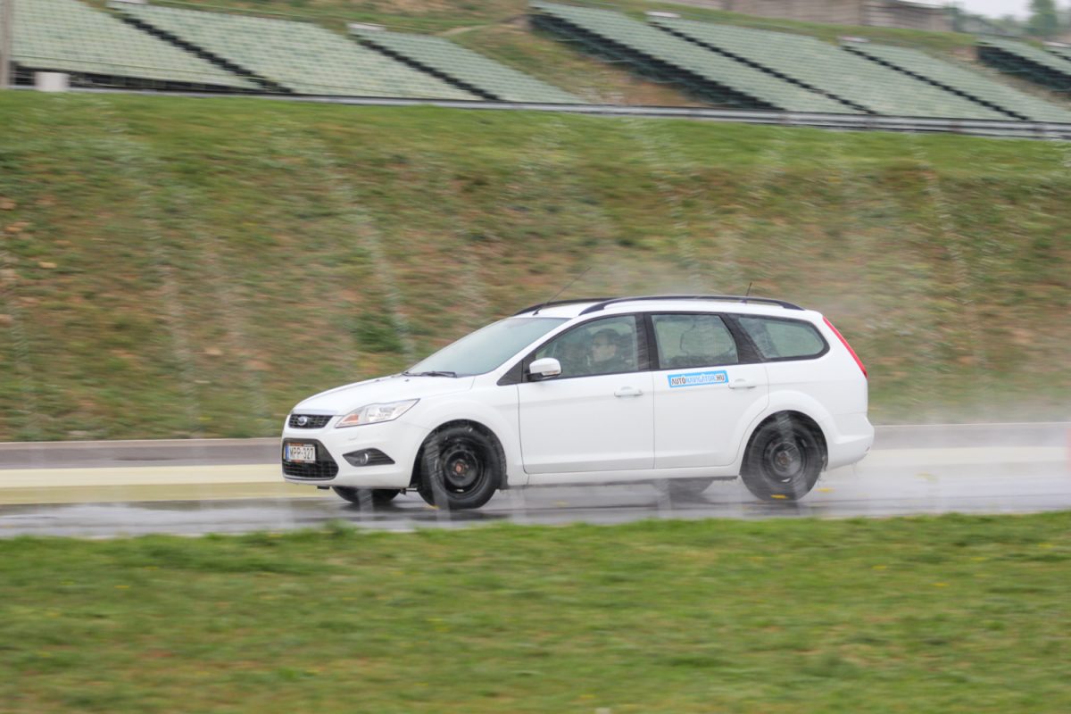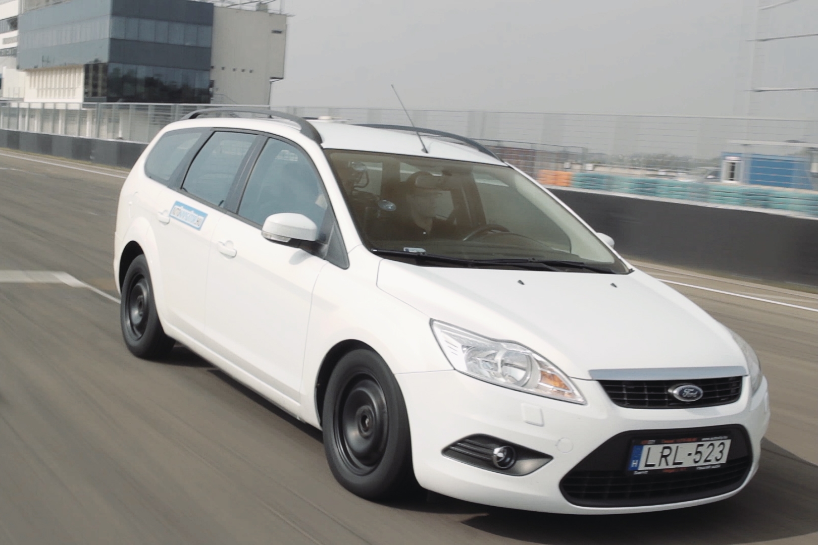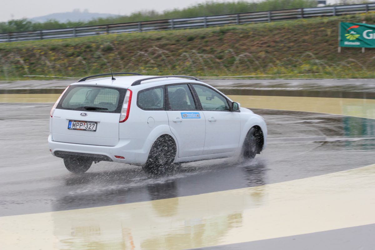 Szokott autókkal – ex-rendőr Ford Focusokkal, szokott helyszínen – a Groupama Garancia Vezetéstechnikai Centrum tanpályáin, illetve a Hungaroring célegyenesében készítettük a nonstopgumi.hu csapatával közös valóságtesztünket