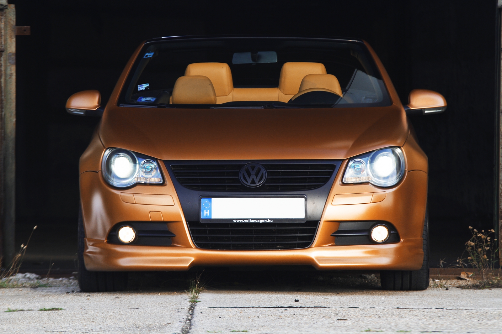 A teljesen egyedi megjelenésű autó bárkinek kiváló játékszere lehet, a március 21-23. között tartott AMTS után mintegy két héttel, már névre írva, egy ünnepélyes ceremónián veheti majd át szerencsés nyertes, így akár a teljes idei szezont végigkabriózhatja vele, télen pedig teljes értékű, keménytetős kupé-kabrióként ugyancsak nyugodtan használhatja majd. Ez az Eos természetesen nem csak attól különleges, hogy megnyerhető, hanem attól is, hogy Nokta Balázs és csapata építette át. A hazai tuningéletben jártasaknak ez már sokat mondó, de nézzük magát az autót. Eredetileg egy nem túlzottan izgalmas, fekete színű, 2,0 literes 150 lóerős FSI benzinmotoros példány volt. Aztán Balázs és „társai – természetesen az AMTS szellemében – kezelésbe vették.