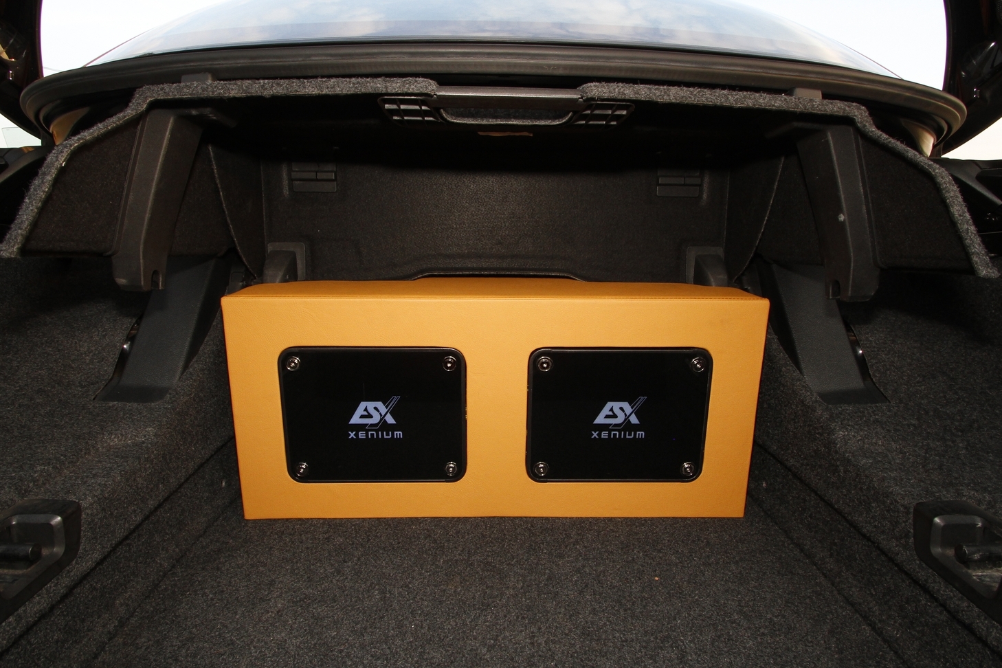 A csomagtérbe természetesen úgy kerültek az ESX erősítők, hogy az Eos esetében üvegbetétes tető továbbra is odahajtogatható