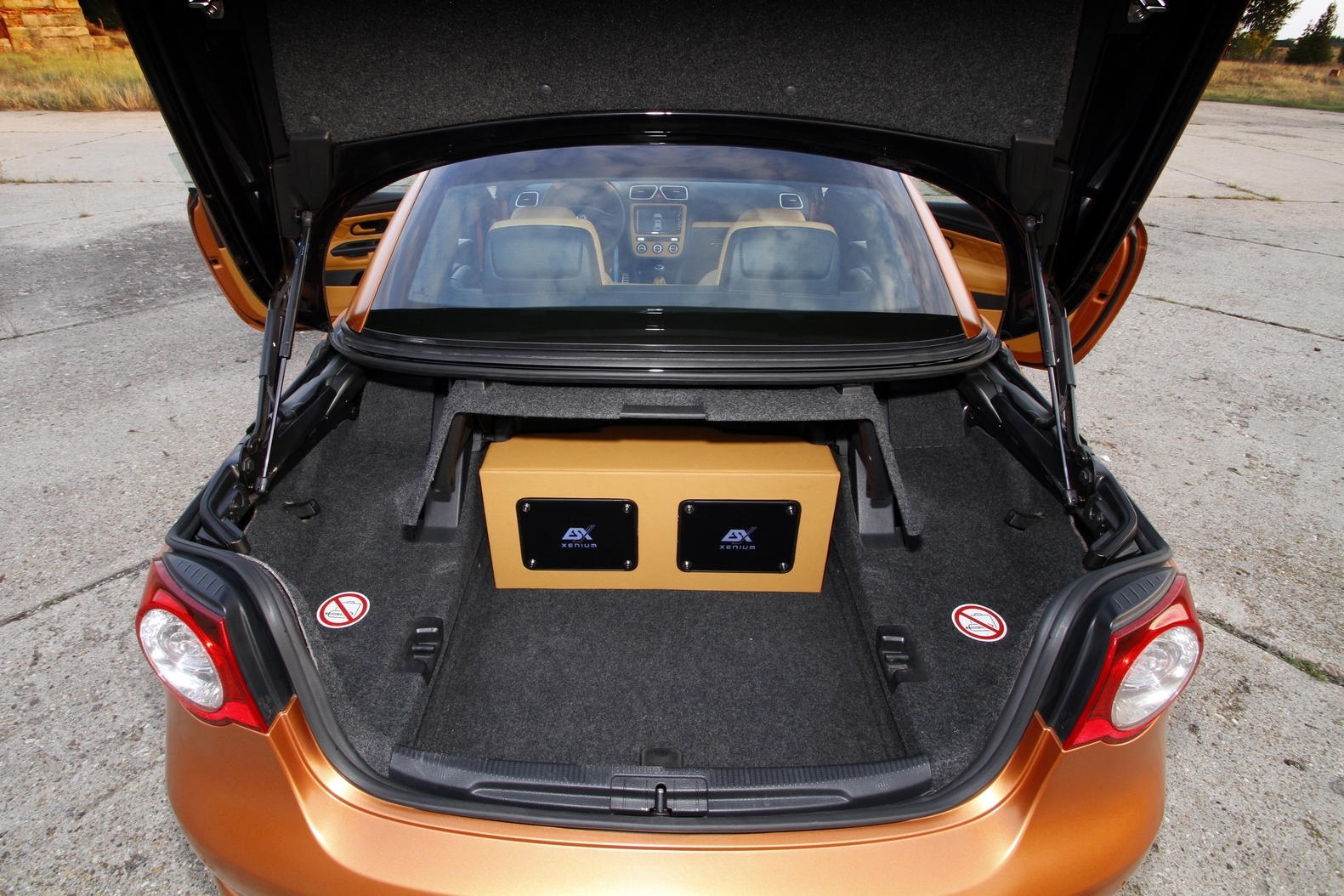 A hangrendszer sem kispályás, a négyüléses Eos komoly buliautó lehet, mélynyomója a kétüléses hátsó sor közepén dübög