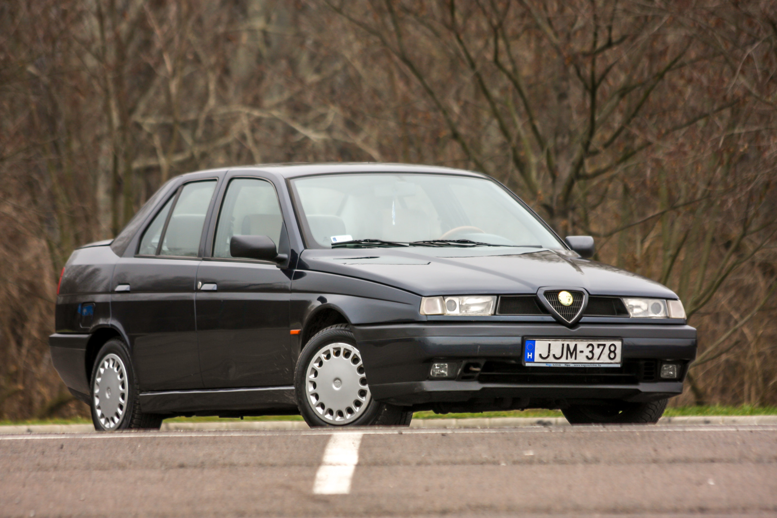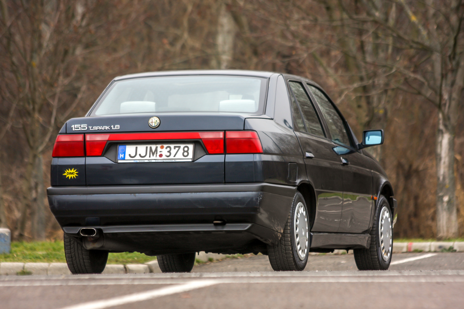 Szóval emberünk 2009-ben vette a már említetteken túl azért is (mondjuk egy szintén favorizált Mazda Xedos 6-tal szemben), mert pompás a formája, mert olasz, mint a Maserati és a Lamborghini (nála gyerekkorától fogva utóbbi a non plus ultra), és maximum 300 ezret volt hajlandó kifizetni érte. Aztán 240 ezerért találta és kaparintotta meg ezt a példányt. Szépnek tűnt, gyárinak, eladója szimpatikusnak, a kasztni meg kevésbé rohadt, mint most (szokásosan a hátsó sárvédőn pörsenve). Klíma és elektromos ablak szerepelt a kívánságlistán, feszes, ismerten és tipikusan olaszos, Fiat-csoportos, kiváló futómű, „kellő erő – és a 155 legnépszerűbbike, az 1.8 TS abszolút megfelelő volt a maga 129 lóerejével és percenkénti 5000-es fordulaton 165 Nm nyomatékával.
