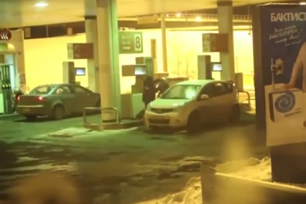 Egy benzinkúton parkoló autóból rögzítették az alábbi képsorokat, valahol Oroszországban.
