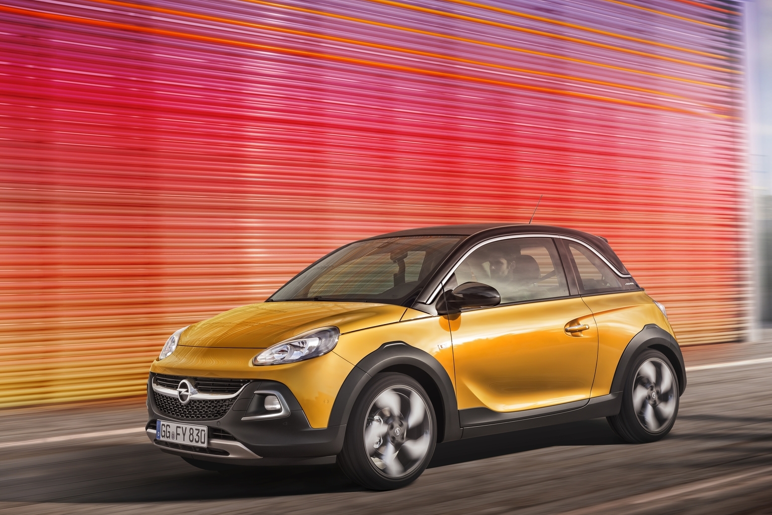 Módosított, áthangolt futóműve 15 mm-rel emelt, körbe lett műanyagozva, de természetesen szó nincs összkerékhajtásról, terepképességről vagy bármi ilyesmiről. Ellenben egyre-másra érkeznek a divatos kis crossoverek, értelemszerűen az Opel sem akar ki- és lemaradni. A polgári Adamnál csöppet szélesebb és magasabb Adam Rocks 17-18 colos gigafelniken gurul, s a manapság „kötelező extra, a hátrahúzható vászontető sem hiányzik (motorosan 5 mp alatt nyitható-csukható)