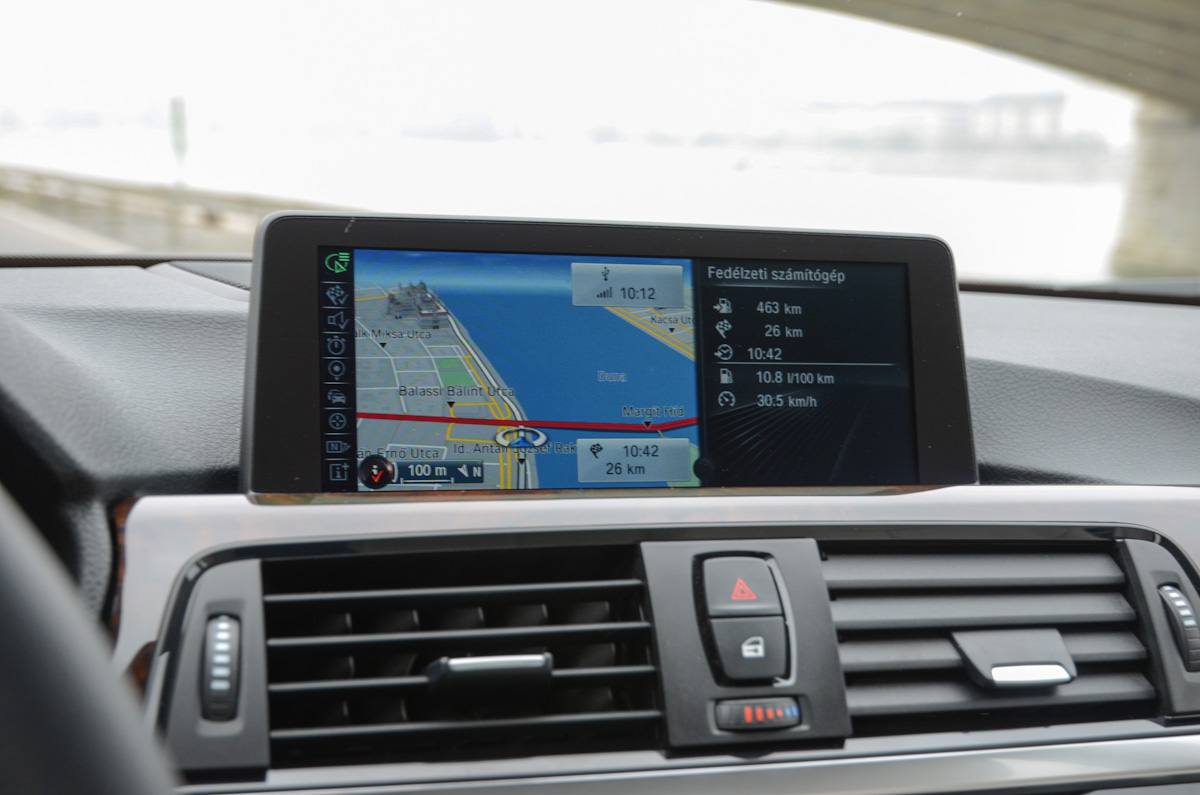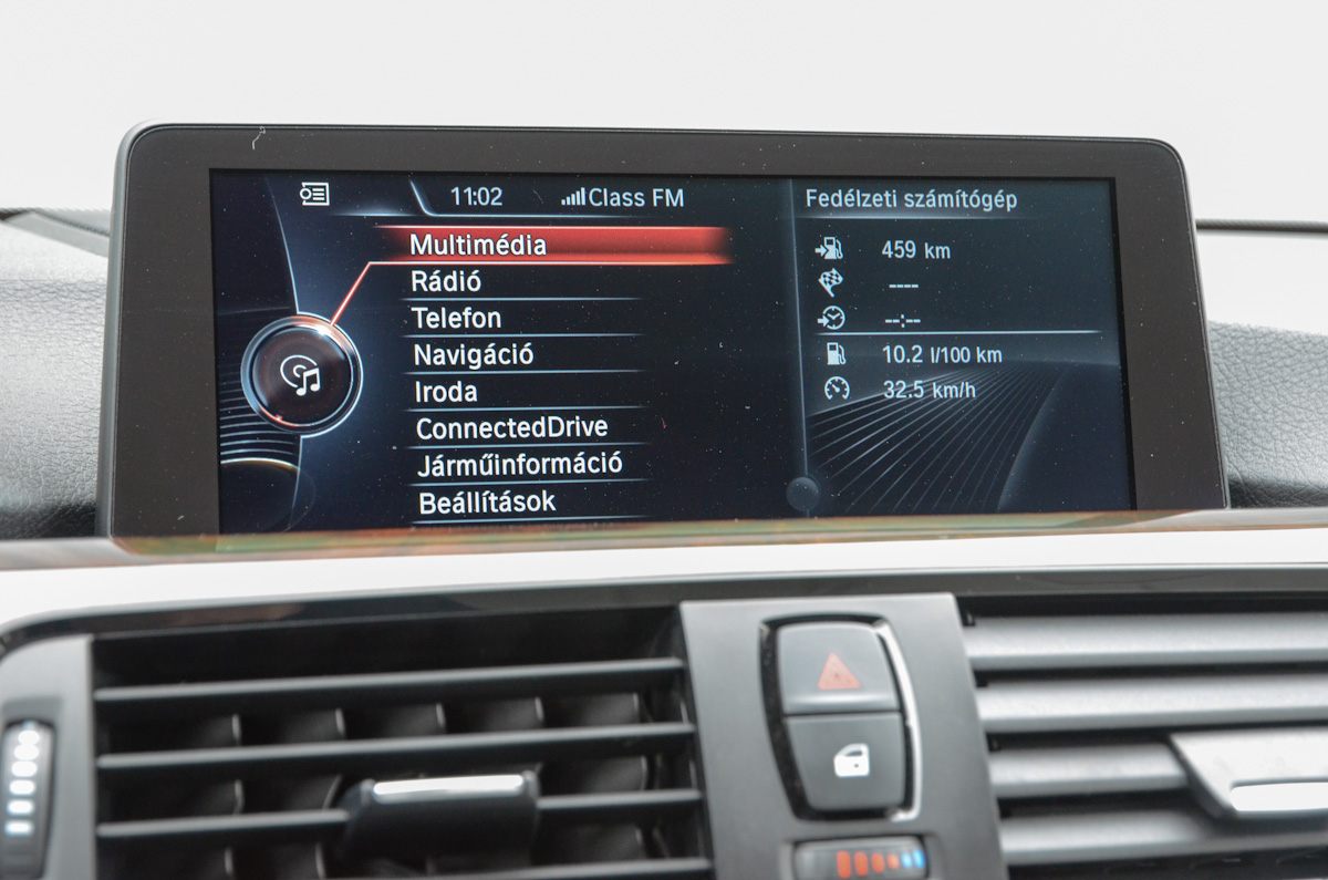 Jól felszerelt. Annak ellenére, hogy a tesztautóban nagyjából 7,6 millió forintnyi extra van, még közel nem fullextrás. Ez egyáltalán nem gond, így is rendkívül hasznos és izgalmas kiegészítőket találunk az autóban. Az összkerékmeghajtás rendkívüli stabilitására rátesz még egy lapáttal az adaptív M futómű és a változtatható áttételű sportkormány. Ezzel a kombóval olyan könnyen és pontosan vezethető a Gran Coupé, mint egy versenygokart. A kormány kellően közvetlen, oda megy ahova akarom, a kiválasztott ívet rendíthetetlenül tartja. A biztonságos vezetés érdekében a Head Up Display a látóterünkbe vetít minden olyan információt ami vezetés közben szükséges. Ennek köszönhetően a szemünk mindvégig az úton maradhat. Az egyik leghasznosabb funkció a sebességhatár és az előzési tilalom kijelzése, amelyet a műszerfalon, illetve a Head Up Displayen is láthatunk. Segítségével mindig láthatjuk, hogy az adott útszakaszon mennyi a megengedett maximális sebesség és van-e érvényben előzési tilalom. Említésre méltó extra még a Harman Kardon hifirendszer, amely 16 hangszórón keresztül 600 Wattot szólaltat meg odabent. Az élmény talán még a koncerttermek hangulatát is megelőzi.