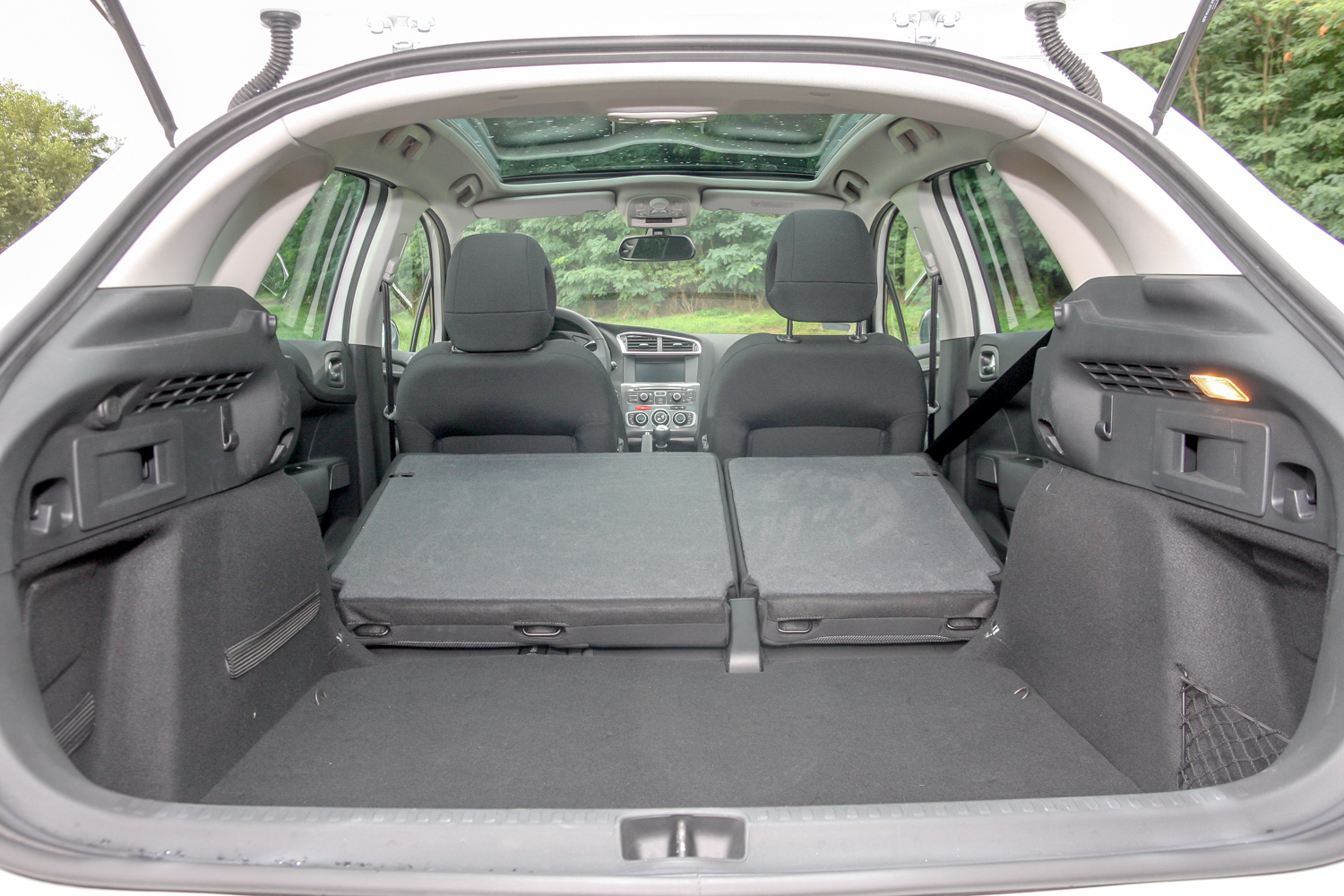 Kell a napfénytető? A hajtáslánctól elvonatkoztatva a kizárólag ötajtósként elérhető, három ajtóval és kombi karosszériával nem kapható C4 elődjénél németesebb, nem annyira megosztó, semleges formájú alsó-középkategóriás ferdehátú. Elöl méretes, hátul még pont jó ülésekkel, komoly belső szélességgel, az opciós panorámatetőnek „hála” korlátozott belmagassággal. Ha fényre vágysz: a Cielo panoráma üvegtető elektromosan állítható árnyékolóval 160 ezer forintos extra, kár, hogy fix, nem nyitható. A csomagtér – pótkerék nélkül – 408 literes, pereme alacsony, alakja téglalap, a támlahajtásos bővítés után a padló sajnos nem sík. Ilyen kampó, olyan rögzítőfül, szalag, 12 V-os csati van, hálós rekesz is.