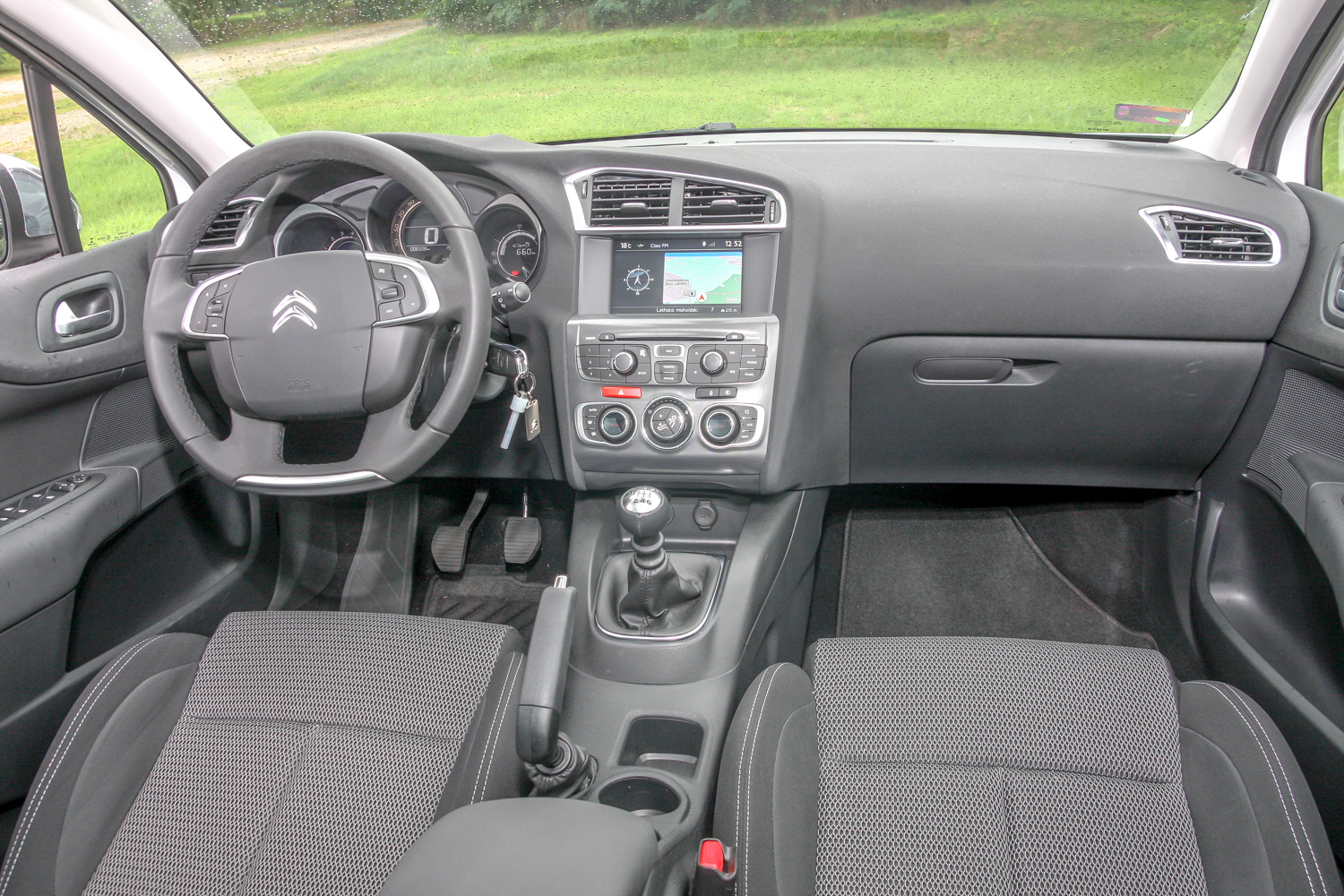 Nyeklik. És nyaklik. A váltókar hosszú utakon jár, nem a legprecízebben megvezetett, nem élmény vele kapcsolgatni. A futómű ma talán a legpuhábbra, legkényelmesebbre hangolt, ami egyfelől komfortos, másfelől néha bosszantó – billegős, dőlős, hajós. A kormány – legalábbis a tesztautóban – nagyon nem tetszett: középre nem akaródzott visszatalálnia, általában a visszajelzésekkel fukarkodott, különben meg a hatalmas átmérő, a fura forma is divatjamúlt. Cserébe nem fix közepű, mint rég. Fék? Korrekt. Aki bármi sportosságot remél a C4-től, rossz helyen kopogtat, ám ennél bajosabb, hogy a tesztautóban nyeklett-nyaklott, mozgott a hajtáslánc, szépen-finoman-könnyedén, rángatás nélkül indulni kb. lehetetlen volt – reméljük, egyedi hibáról lehet szó.