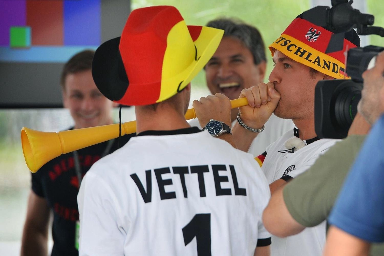 A Massához hasonlóan az F1-futballcsapatban is játszogató ferrarista Fernando Alonso természetesen a spanyolok ismétlésében hisz, bár „nem lesz könnyű a csúcson maradni. (Iniestáék az első csoportmeccsükön el is szenvedtek egy bitang 5:1-es verést a hollandoktól.) Az aktuális legjobb mercedeses Nico Rosberg és a négyszeres címvédő világbajnok Red Bull-alkalmazott Sebastian Vettel szerint egyértelműen a német keret a legerősebb, s a Nationalelf győz. Rosberg frappánsan azt is hozzátette, hogy előbb nyerjenek világbajnokságot Özilék, aztán pedig majd ő következik…