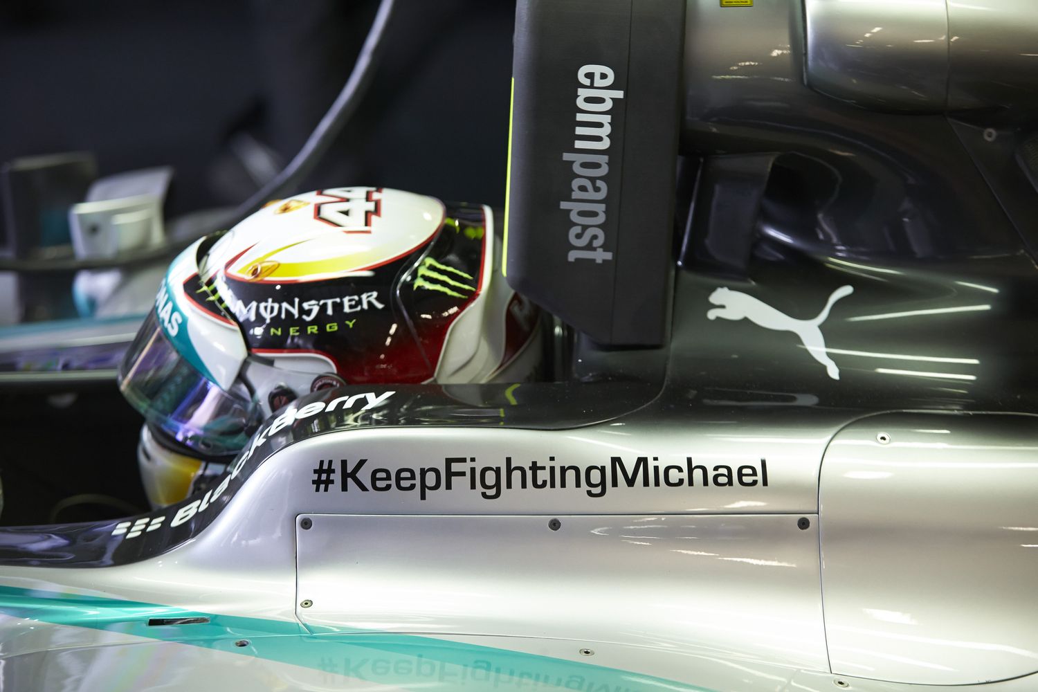 A szokásos üzenet a már Svájcban kezelt Schumachernek: Ne add fel, Michael!