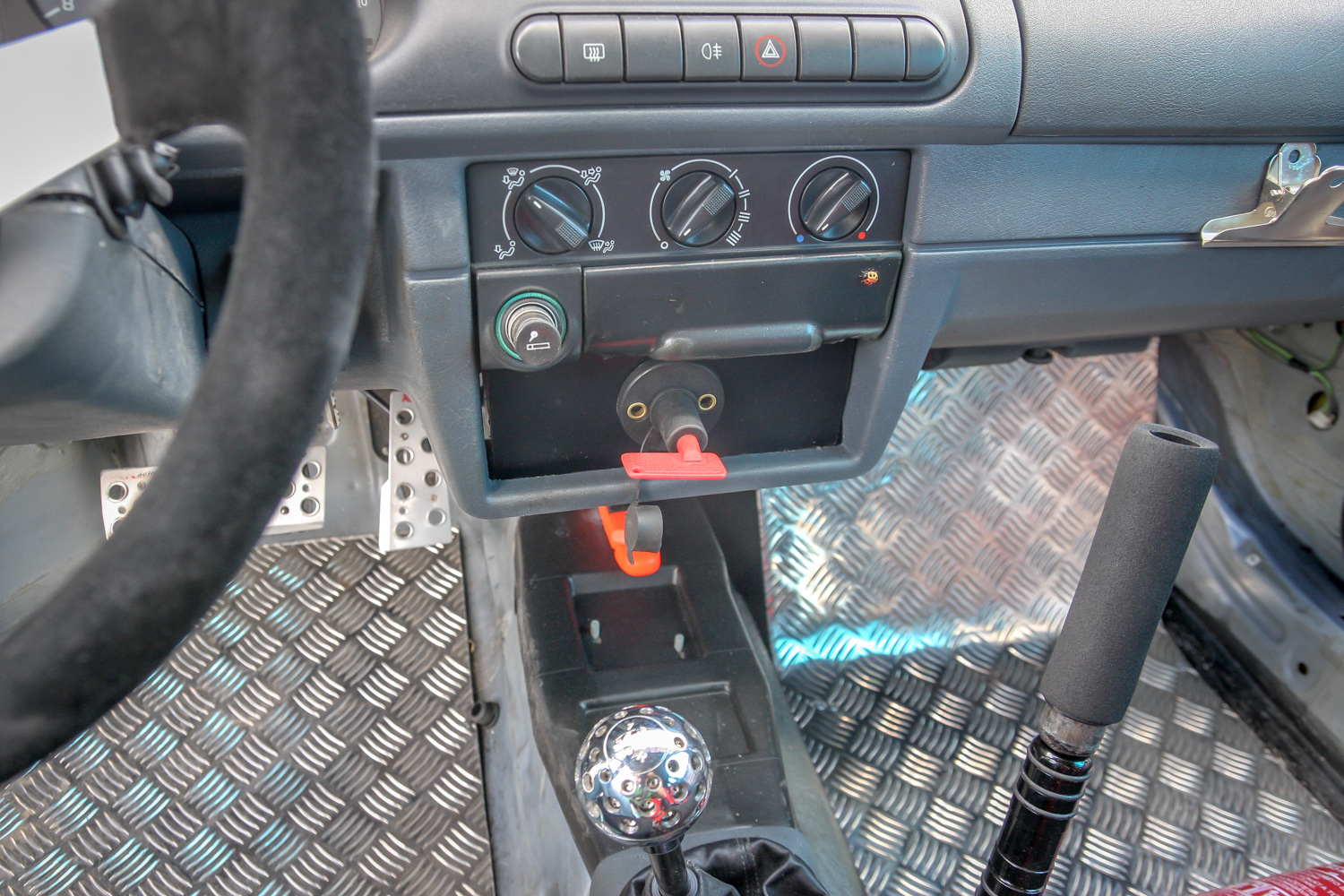 Mert tényleg jó, pláne, ha csúszik is az út. És csúszott, mint a fene, előttem egy pilótának a sín is megvolt, pedig igen szépen fűzte a „pályát”. Sebaj, kiemeltük a kocsit – semmi baja nem esett se neki, se a legénységnek. Akkora tempó nem volt… Amúgy bukócső nincs, mert minek, csak nehezítené a kb. 900 kilós súlyt. Nem mérték, nem mérlegelték. A 9 mázsát gyárilag 54 LE és 94 Nm repít – na ja, nem egy erőmű. Cserébe kárpitok híján zajos, ami segít fokozni az élményt, plusz ott egy BMW-ből átrakott hidrós kézifék, ami Bubu és társai értő jobb kezében csodákat művel. Tudod: kis billentés, ráhúz, hátsó tengely blokkol, csúszol, örülsz. „Fél kilenc” is zseniálisan csúszkált. Ő egy 8,5 éves srác, Kerekes Bence a becsületes neve, helyi menő, ügyes nagyon, a pedálokat is elérte, nyomta a kereszteket, ahogy kell.