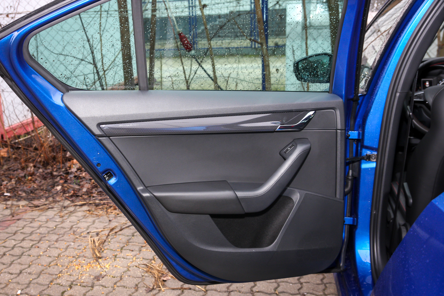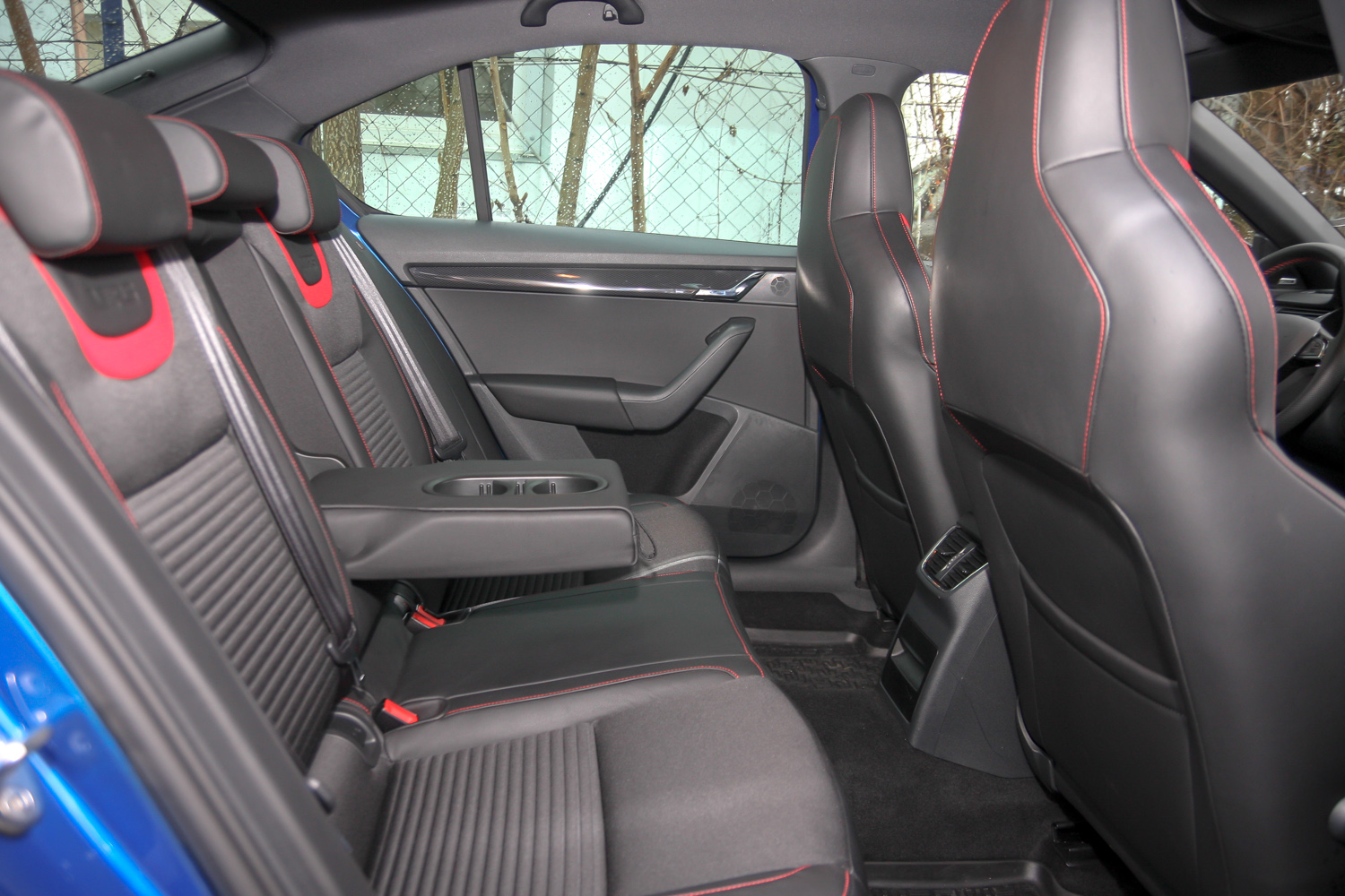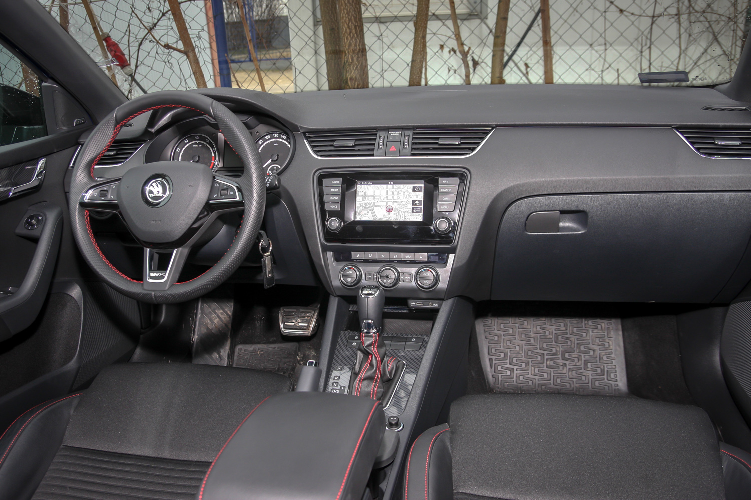 Szépen lehet ám költeni, mire pazarul felszerelt lesz az über-Octavia. A tesztautó úgy uszkve 9 milliós, hogy az árból lejön a „szokásos” 600 ezres kedvezmény, és okoskulcs vagy adaptív tempomat nem is volt benne. Cserébe a bőr/szövet sportülés kiváló, jó mélyre engedhető. Első nap azt hittem, nem az, aztán csak nem hittem el, hogy ez a „legalja”. Megakadhatott, de közösen átjutottunk a holtponton, s végül tökéletes lett a vezetői pozíció. Még azt is kitűnően láttam belőle, hogy sávváltáskor, a napi pesti „harcokban” audis, BMW-s sorstársak is szívesen engedték be a Skodát. A LED-es lampionok, a kipufogóvégek, a szolid szárny, a felnik, a piros féknyergek, a fekete maszkolás együtt megnyerő képet alkotnak és tekintélyt kölcsönöznek, de tényleg.