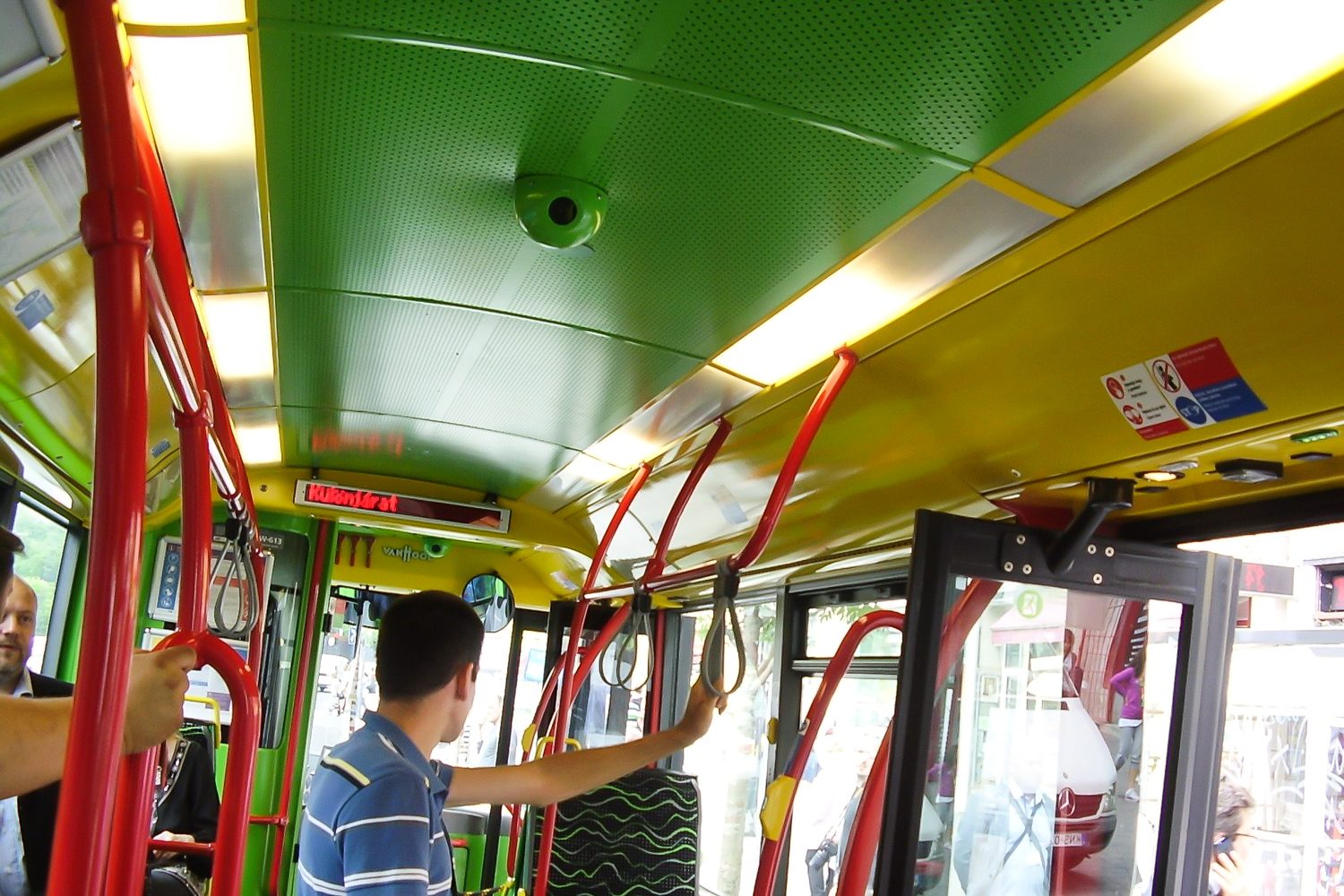 Maga a Van Hool New A330 kellemes, viselkedése utas- és állítólag vezetőszemmel is megegyezik a dízel társaiéval. A 37 CNG-hajtású Van Hoolból csak 8-nak van gyári rámpája, a többi 29-en mobil rámpa szolgál. A kerekesszékesek és babakocsisok felszállását ez is megfelelően segíti, de a buszvezetőnek ezzel több munkát okoz a belga Van Hool, mint más típusok. A rámpát nem elég egy fémkampóval, egy mozdulattal felhajtani, hanem elő kell venni az utastér középrészéből és a helyére kell illeszteni. A típus további feltűnő hátránya, hogy míg a sima, dízel A330-as 28 főt képes leültetni a vezetőn kívül és emellett még 79 szabvány méretű álló utas is belefér, addig a CNG-kivitel bal hátsó sarkában fekvő motorja annyi helyet elfoglal, hogy csak 23 ülő és 73 álló utast tud befogadni. Szemre olyan mínusz 10 férőhelyesnek éreztem a hátrányt, nem saccoltam rosszul, 11 férőhelynyi mínusz az áldozat az alternatív hajtás oltárán.