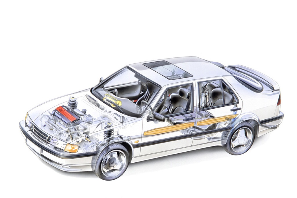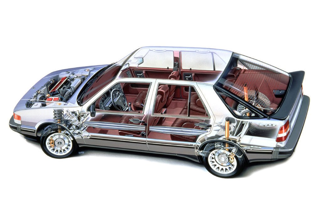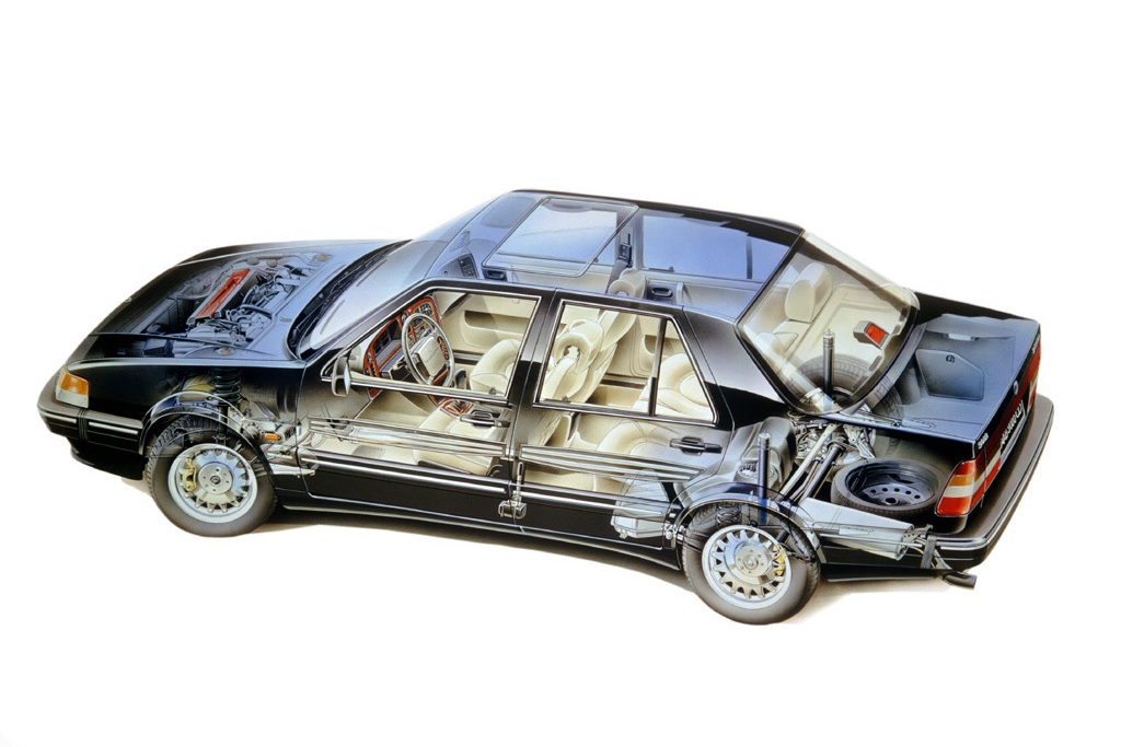 A korabeli keményvonalas saabosok az olasz rokonság miatt köpködték is a típust. Formája sem a megszokott íves, amit a 900-ason és elődein megszoktunk. Az akkor divatos kockaság mellet persze szól érv, a szűkös 900-ashoz képest ez valóban egy megfelelő méretű prémium nagyautó volt már. Aztán ott a gyújtáskulcs mizéria; mivel a vázszerkezete az olaszokéval megegyezik, egyszerűbb volt az ő slusszkulcsát is a megszokott normális helyre, a kormánytól jobbra elhelyezni. Így kimaradt az a kedves sajátosság, hogy a váltóboxon van a gyújtáskulcs, meg elmaradt a hatvanas éveket idéző, de a kilátáson javító panorámaszélvédő is.