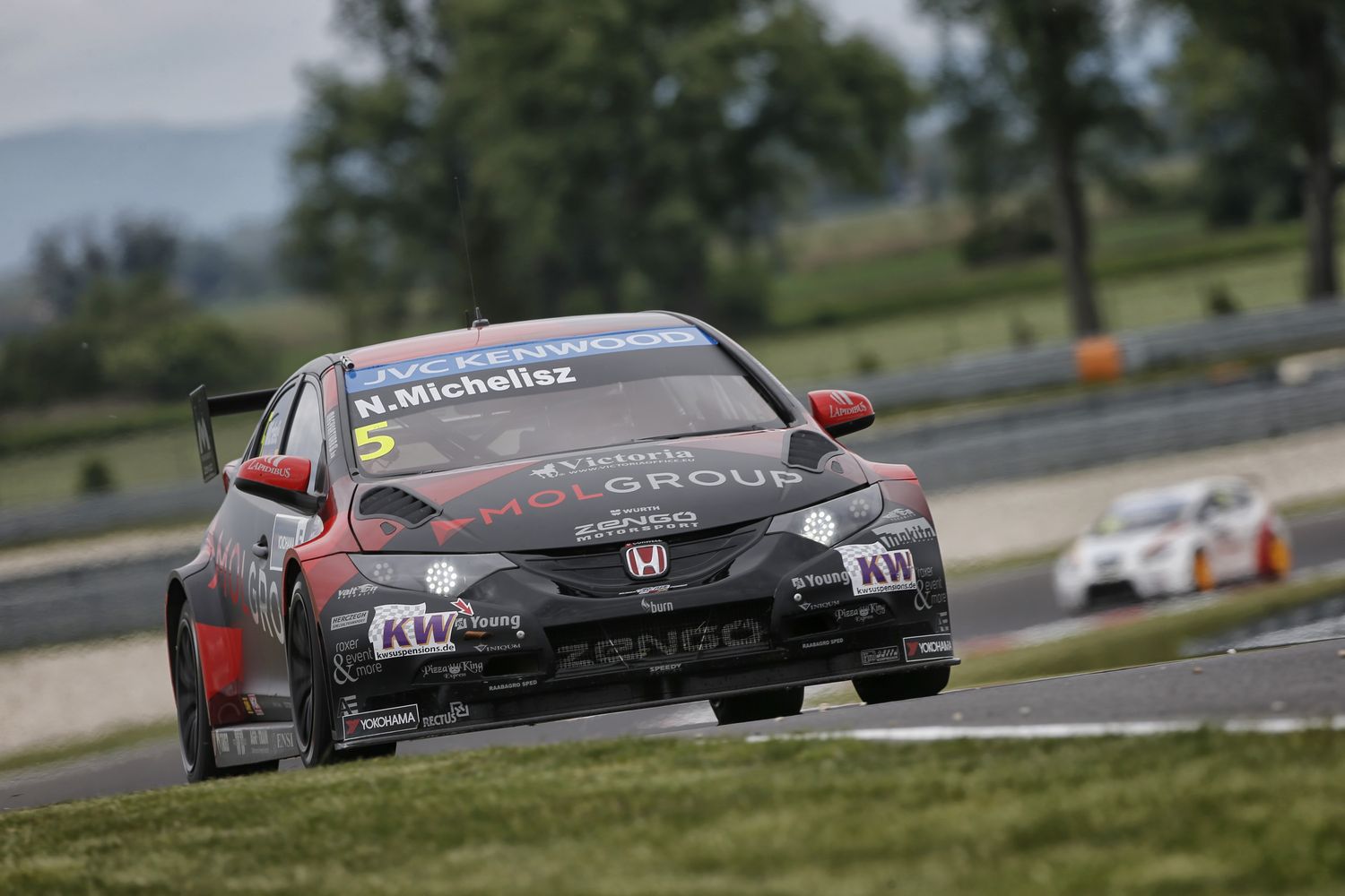 Egy héttel a Michelisz szempontjából peches mogyoródi WTCC-hétvége után Szlovákiában már kijött a lépés a Zengő Motorsportnak: Norbi az időmérőn negyedik, az első – és egyetlen – futamon meg harmadik lett, s ezzel jó sok pontot szerzett az összetettben.