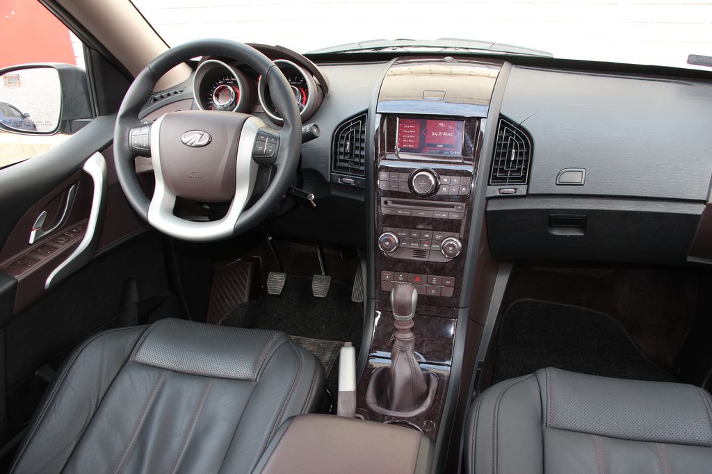 Bent az utastérben egy kicsi, olcsó kínai (akarom mondani kici, olcó, kínai), akár öregemberesnek is nevezhető műanyagszag lebeg – legalábbis lebegett a keveset futott tesztautóban. Bár a műanyagok több tónusúak és textúrájukkal néhol, például az ajtók szélénél vagy a kesztyűtartónál egészen kellemesek, mindenhol kemények, a középkonzol környékén pedig fényes felületűek, s egészen borzasztó, a legrosszabb, mintegy 15 évvel ezelőtti japánautó-belsőket idéző „erezetűek”. Az egyébként látszik, hogy a Mahindra minden tudását igyekezett beletenni az akár prémium SUV-nak is nevezhető XUV500-ba. Elöl-hátul palacktartósak az ajtózsebek, dupla a kesztyűtartó, mély, hűthető rekesz került az első ülések közé, van pakolóhely annak fedelében és a műszerfal tetején is, ráadásul ezek mind flokkolt belsejűek. Van navigációs (6 colos) érintőképernyő is a középkonzolon, ám az összhatás mégis igen messze van a prémiumvilágtól. Annak ellenére messze van onnan, hogy az üléseket a gyártó szerint olasz bőr borítja. Ha viszont nem a kárpit eredetét, hanem a tapintási minőségét nézzük, akkor messze van a finomtól, de talán még a valódi bőrtől is. Még messzebb van attól a kormány bőrnek mondott burkolata, persze utóbbiak finom kelmék a kifejezetten kellemetlen, műanyag és radírgumi kombinációjú váltógombhoz képest.