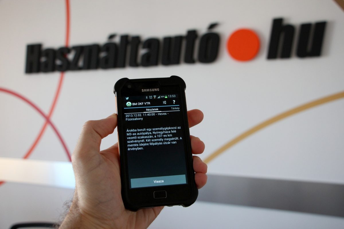 Ehhez nem kell mást tenni, mint az egyelőre még csak bétaverziójával és csakis Android operációs rendszerrel elérhető, tesztüzemben „BM OKF VTR (Belügyminisztérium Országos Katasztrófavédelmi Főigazgatóság Vészhelyzeti Tájékoztató Rendszer) névre hallgató, de névadás előtt álló, krízishelyzeti tájékoztató applikációt telepíteni telefonunkra. Beállíthatjuk, hogy az ország teljes területére vagy csak egy-egy régióra, netán csupán GPS-pozíciónk környékére vonatkozóan kívánunk-e információkat kapni az úttorlaszokról, útlezárásokról. Cikkünk írásakor például az alkalmazásból megtudhattuk, hogy december 2-án 11:40-kor „Árokba borult egy személygépkocsi az M3-as autópálya Nyíregyháza felé vezető szakaszán, a 107-es km szelvénynél. Két személy megsérült. A mentés idejére félpályás útzár van érvényben.. Az arra autózóknak bizonyára hasznos infó ez még akkor is, ha emiatt vélhetően nem alakul ki komoly torlódás, hiszen ez csupán egy kék színű tájékoztatás. Érdemes tudni, hogy a sárga, (2-es szintű) üzenetek már figyelmeztetések, míg a vörösek (3-as szint) riasztásnak minősülnek, azokat nem szabad félvállról venni.[BANNER type="1"]