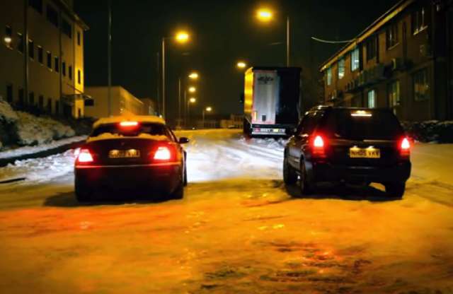 A második videón már egyéb hátsó-, és elsőkerék-hajtású, ugyancsak nyári gumival szerelt modellekkel is megmérkőzik a téli abroncsokat hordó M3. A hátul hajtó 1-es BMW-nél bevetésre kerül a jó öreg trükk, a hátsó tengely terhelése is (a lehető legkevésbé biztonságos módon, csomagtérbe ültetett utasokkal), ám minden hiába, hóban nincs értelme nyári gumival útnak indulni. E felvételekből, és persze saját méréseinkből is látható, hogy a nyári nagyságrendekkel rosszabbul tapad, mint az évszaknak megfelelő téli gumi.