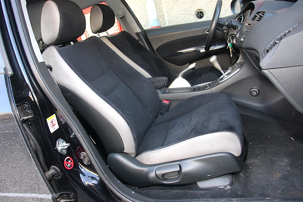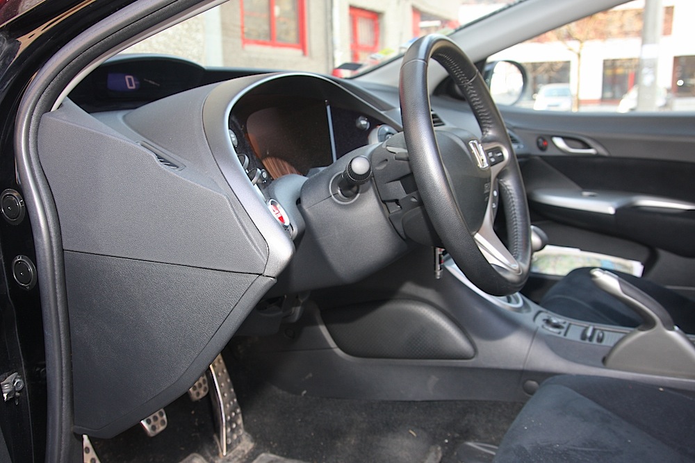 Szélesre táruló ajtókon jutunk a komfortos, barátságos hangulatú utastérbe, kimondottan kényelmesek az alcantarára emlékeztető anyaggal borított ülések, kitűnő az ergonómia. A sofőrre állított első – fűthető – ülés mögött a sofőr nagyon kényelmesen fér el hátul, a lábtér is, fejtér is több mint kielégítő. Bár első látásra kicsit szétszórtnak tűnhet a zömükben kerek kapcsolók elrendezése, menet közben gyorsan kiderül, hogy mindez nem véletlen szeszély, hanem átgondolt tervezés eredménye, minden kézre esik, a piktogramok tökéletes támpontot adnak ahhoz, hogy mi mire való. Az S2000-es roadsterből átvett motorindító Start-gomb alapvetően fölösleges, de az autóval együtt ezt is meg lehet szeretni. Az egészből a legfurább a golyóscsapágyra emlékeztető váltókulissza, aminek egyenlőtlen kopása jól mutatja, hogy a főképp városi használatban melyik fokozatok dolgoznak a legtöbbet.
