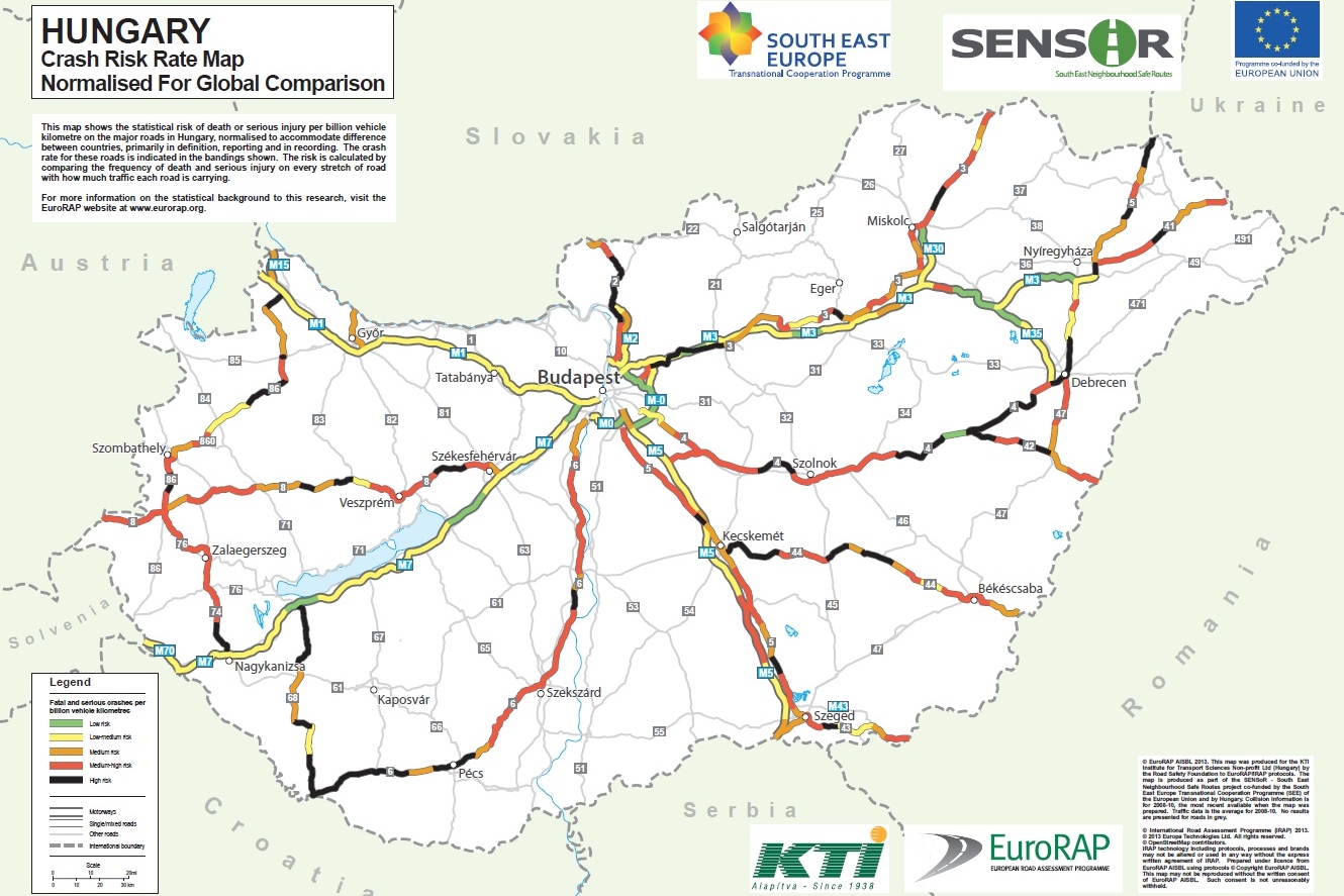 Folyik természetesen a munka a cél érdekében, itt van például az EU és hazánk által finanszírozott SENSoR (South East Neighbourhood Safe Routes – Biztonságos utak a dél-kelet-európai régióban) projekt, mely állítólag mindössze 24 millió forintból mérte fel 2918 kilométernyi hazai útszakasz veszélyességét.