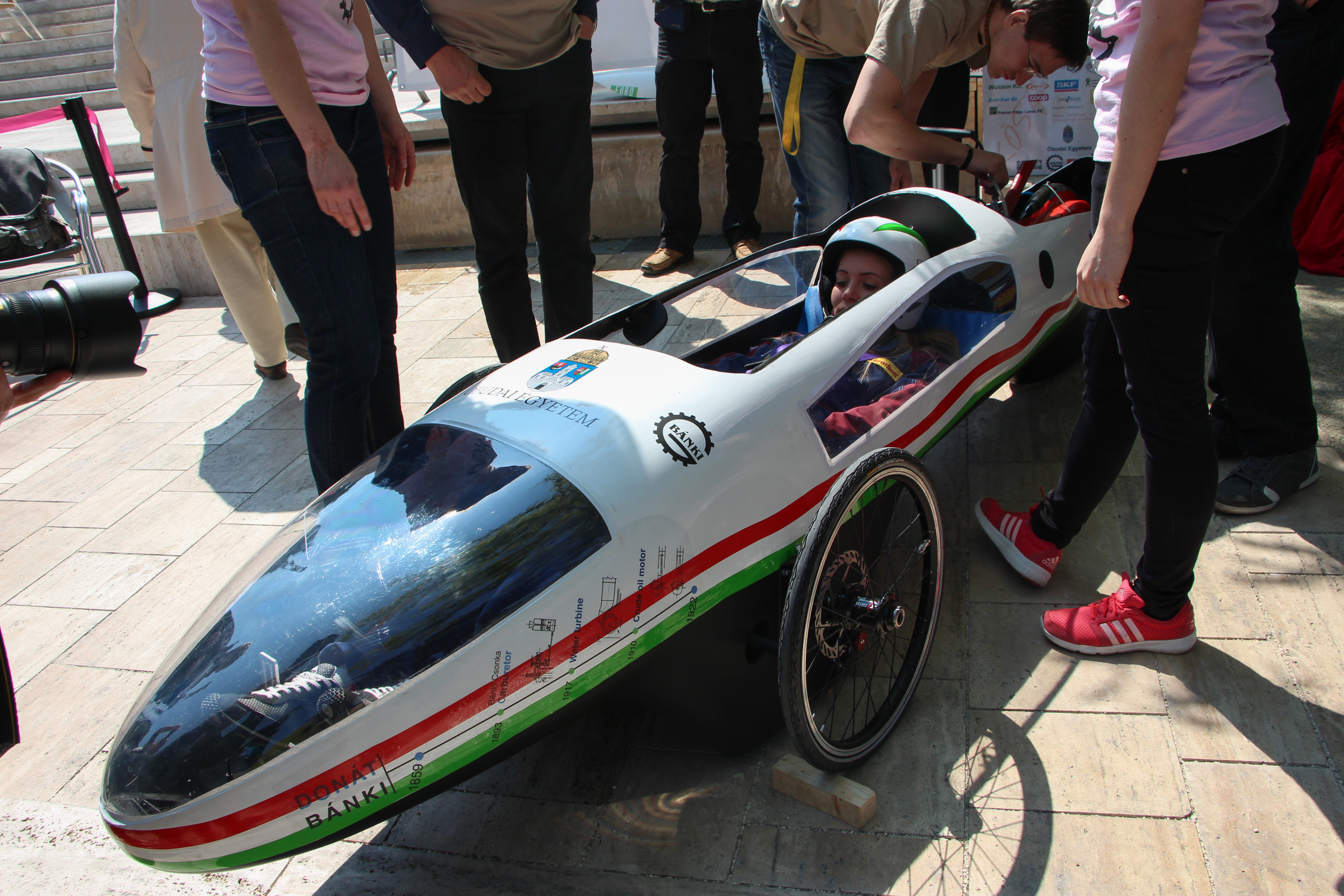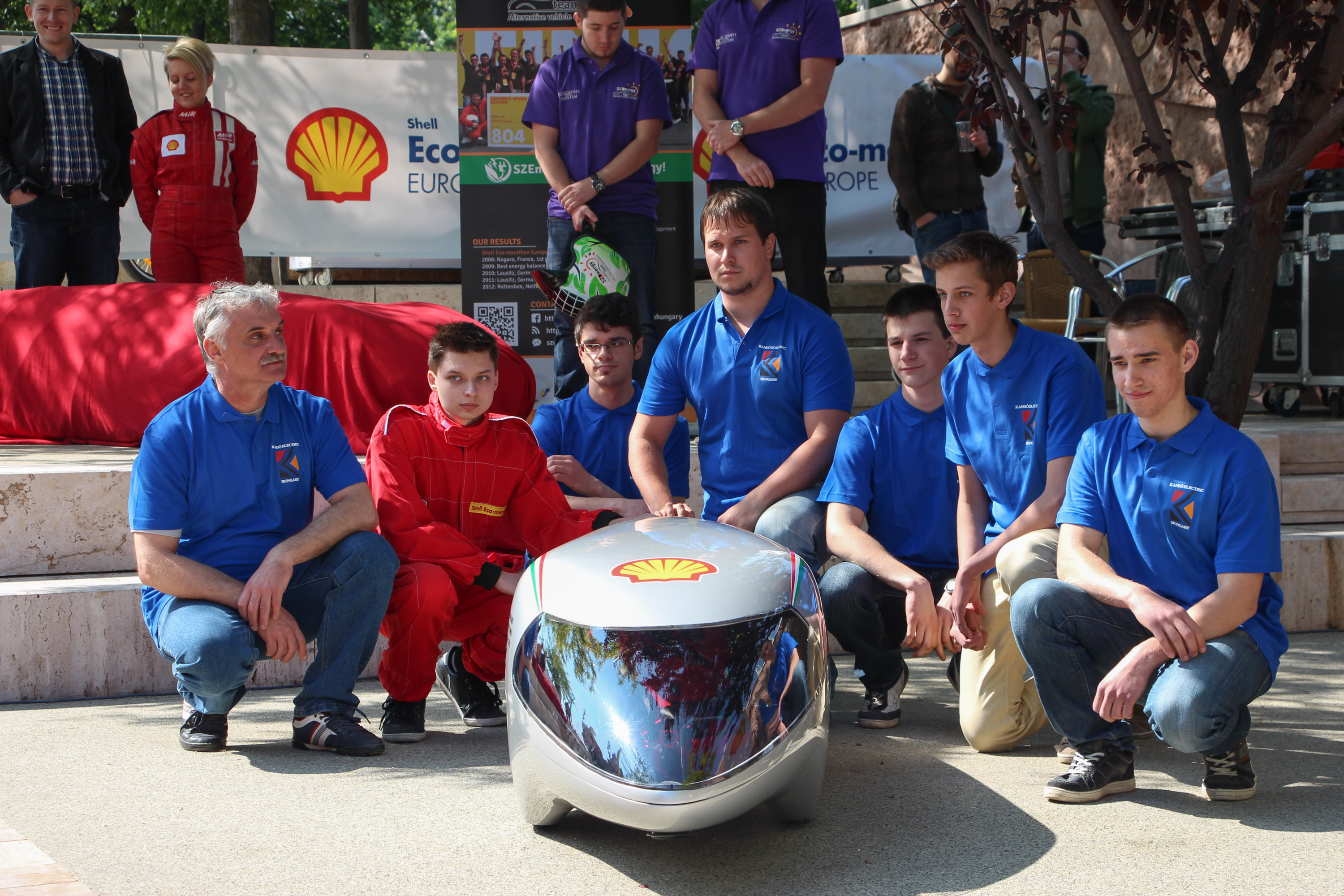 Bár a budapesti közös sajtótájékoztatóra pont a győriek nem tudták elhozni autójukat – azt ugyanis még programozták az otthon maradt csapattagok, megérdemlik, hogy elsőként őket mutassuk be. 2011-ben elnyerték a Shell Eco-marathon Europe Team Spirit különdíjat, akkor ugyanis a gépátvétel kapcsán kétszer is átépítették autójukat a helyszínen, mire végül megkapták a rajtengedélyt. Nem csak akkor bizonyították, hogy bármikor képesek autójukat átépíteni, hanem azóta többször is, 2013-ben teljesen új autóval kellett előállniuk, ugyanis akkor szűnt meg a napelemes SolarUrban kategória, azóta a Battery-electric kategóriában indulnak villanyautóval. Idén a tavalyihoz mérten csökkentett tömeggel, az előírásoknak megfelelően immár saját motorvezérlő elektronikával. Emellett járművük új hátsó felfüggesztést kapott, és számos további gépészeti átalakítás történt a karosszéria alatt is, melyekkel a tavalyi – 32 fős mezőnyben – elért 7. helynél jobbat céloznak.