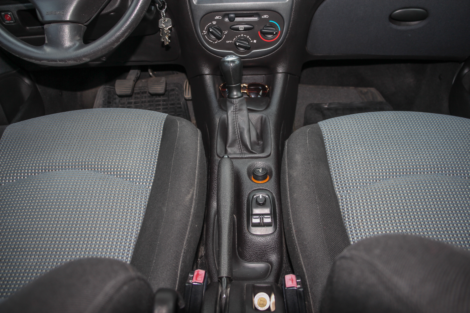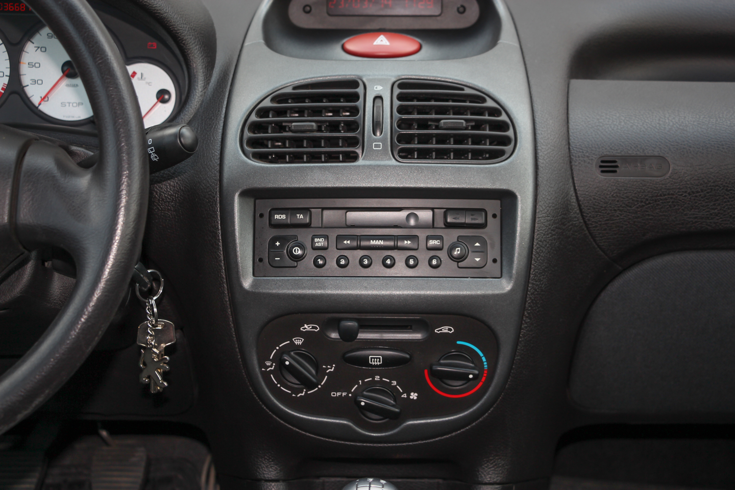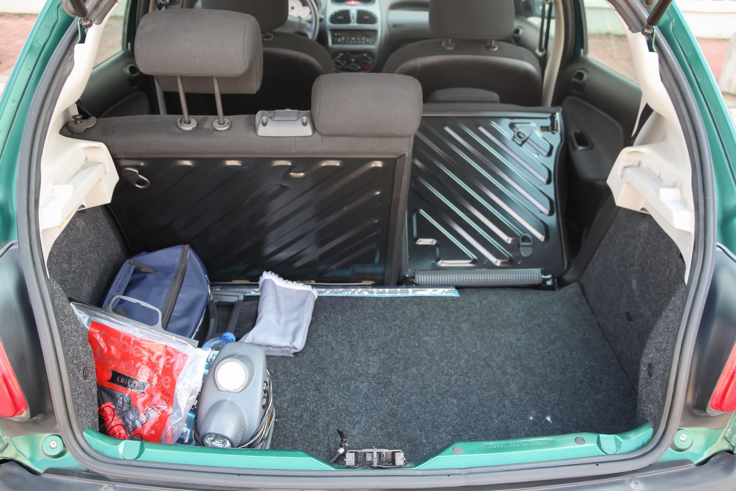 Beülve semmi meglepőt nem találunk, ez a korábbi Peugeot-egyenbelső némi kis plusz kerekséggel á la 206. Újkorában a tesztelők kritizálták az amúgy állítható magasságú kormány szögét és az üléspozíciót is. Nekem egy kicsit túl magasnak tűnt, pedig általában szeretek magasan ülni, és összességében egy picit fura volt, de egy percig sem kényelmetlen. Az ülések, bár kicsi az ülőlapjuk és a hátfelületük is, adnak némi oldaltartást, és a tömésük is megfelelően kemény, átlag testalkattal kényelmesek. A beltérben két kellemetlen dolog van csak: kicsit sok a bőrhatásúra recézett fekete műanyag felület és típushiba, hogy a plasztik kormány nagyon csúnyán hámlik még ezen a 38 ezret futott autón is. Ezen ront, hogy rendszeresen gyűrűben vezetik. Ezeket leszámítva nagyon kulturált, ma is rendben lévő a 206-os. Ja, és még egy ergonómiai baki: az elektromos ablak kapcsolóit nem sikerült az ajtóra rakni, középen vannak a kézifék mellett. Így olcsók, mert – elvileg – a sofőr és az utas is eléri őket, nincsenek duplikálva. A beltéri szövet tartós és minőségi, az ülések hátulját borító műbőrt meg legalább könnyű megtisztítani a gyereklábnyomoktól. És ha már bemerészkedtünk a hátsó üléssorba, akkor hadd írjam le, hogy négy embernek hosszabb távon is kényelmes az utastér. Nyilván térdben limitált a férőhely, de 180 centivel nincs gond, és a fejtér is elég. A 206 pont annyira modern csak, hogy a hátulja nincs túlzottan lecsapva, de az oldalvonala annyit emelkedik, hogy a hátsó oldalablakok már eléggé kicsik.