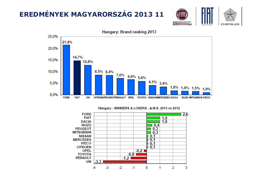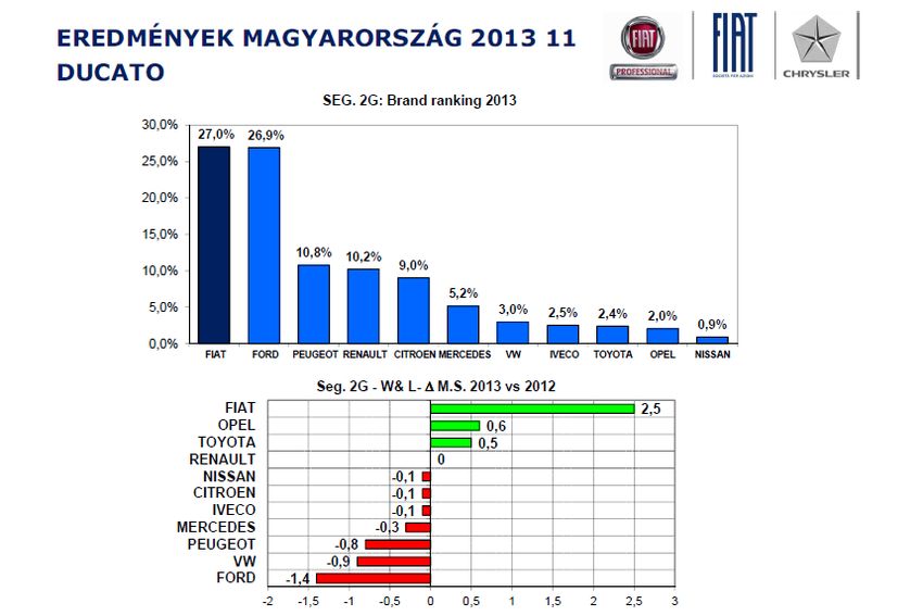 A Fiat értelemszerűen a Ducato sikerére a legbüszkébb, ami ha pár darabbal is, de veri a nagy riválist, míg a Scudo, a Dobló és a Fiorino a középmezőnyt erősíti