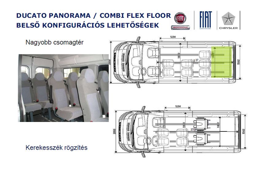Új Ducato jövőre érkezik, addig az Euro 6-os átállás van napirenden. Újdonságként már olyan Flex Floor minibusz is rendelhető, aminek az ülései síneken tologathatóak, kivehetőek, módot ad kerekesszék rögzítésére is