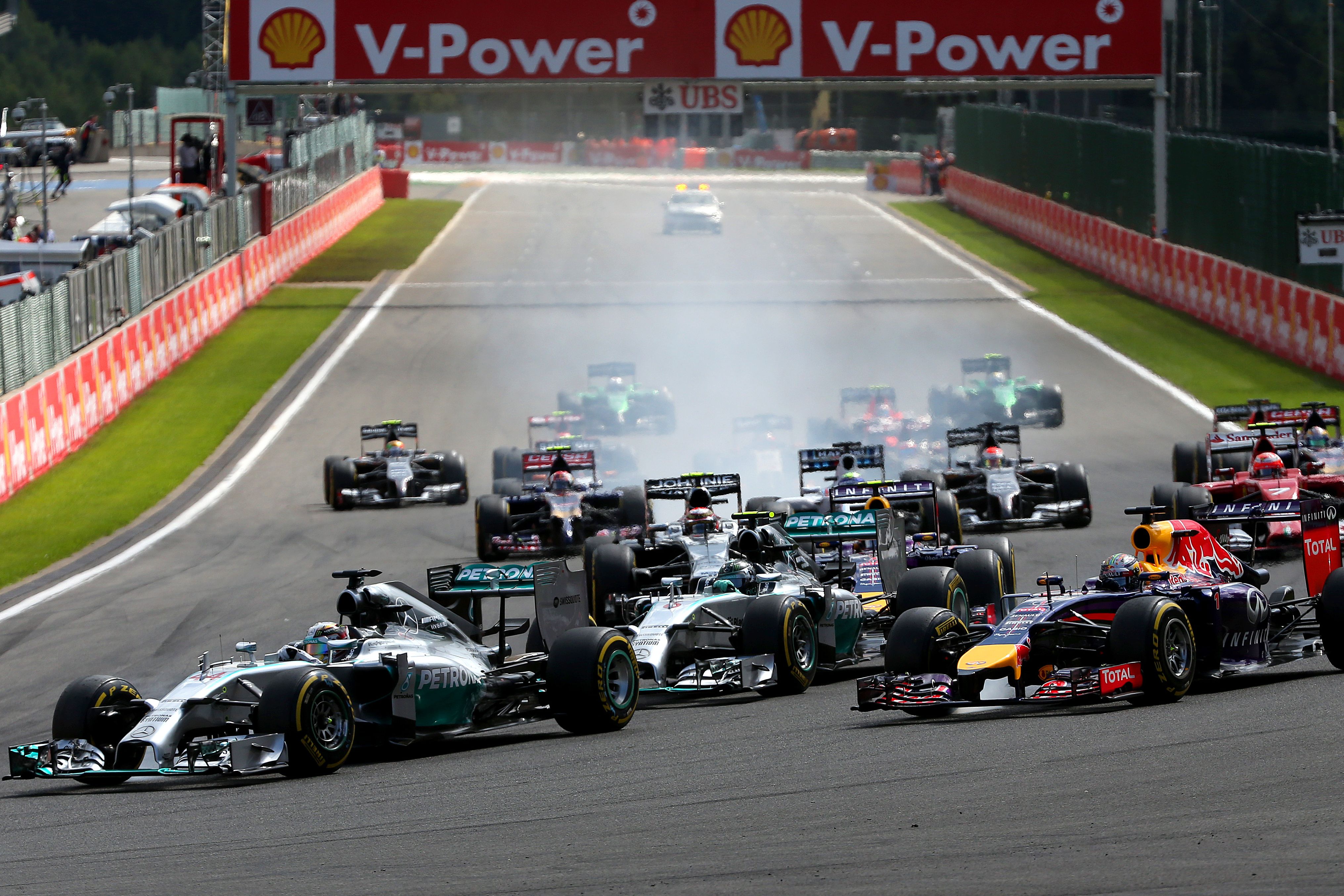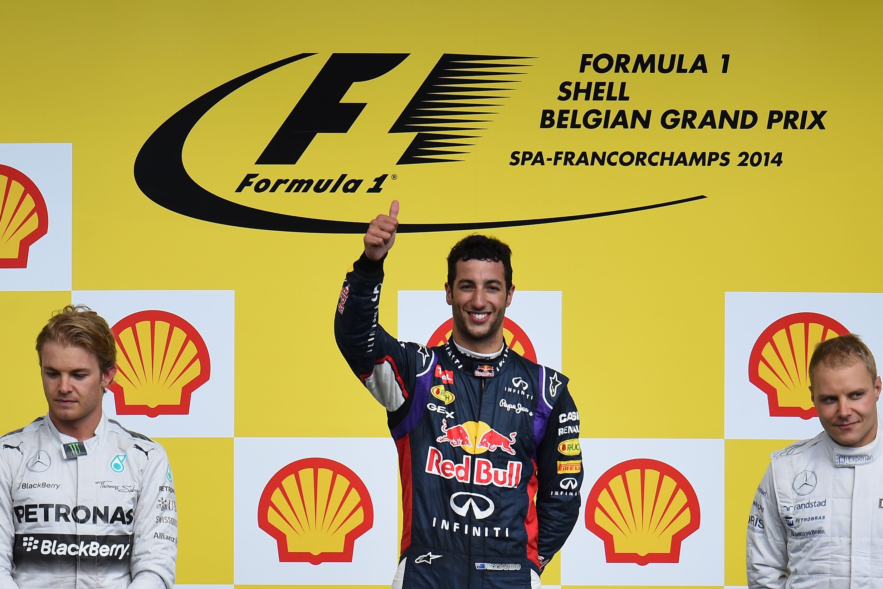 A pazar Magyar Nagydíj és a nyári vakáció után a 19 futamos F1-szezon 12. állomása Belgium, Spa-Francorchamps volt a legendás Eau Rou kanyarkombinációval és a maga 7 km-es, rettenet gyors pályájával. A szombati esős-vizes időmérőn Rosbergé lett a pole, ő és mercedeses csapattársa, Hamilton szörnyű verést mért a többiekre. Debütált a mezőny leggyengébb alakulatánál, a Caterhamnél a japán Kobajasi Kamuit váltó német André Lotterer, más kérdés, hogy vasárnap a versenye kemény egy körön át tartott – motorhiba okán ennyi jutott a Jaguar korábbi teszterének, a 32 éves LMP-menőnek.
