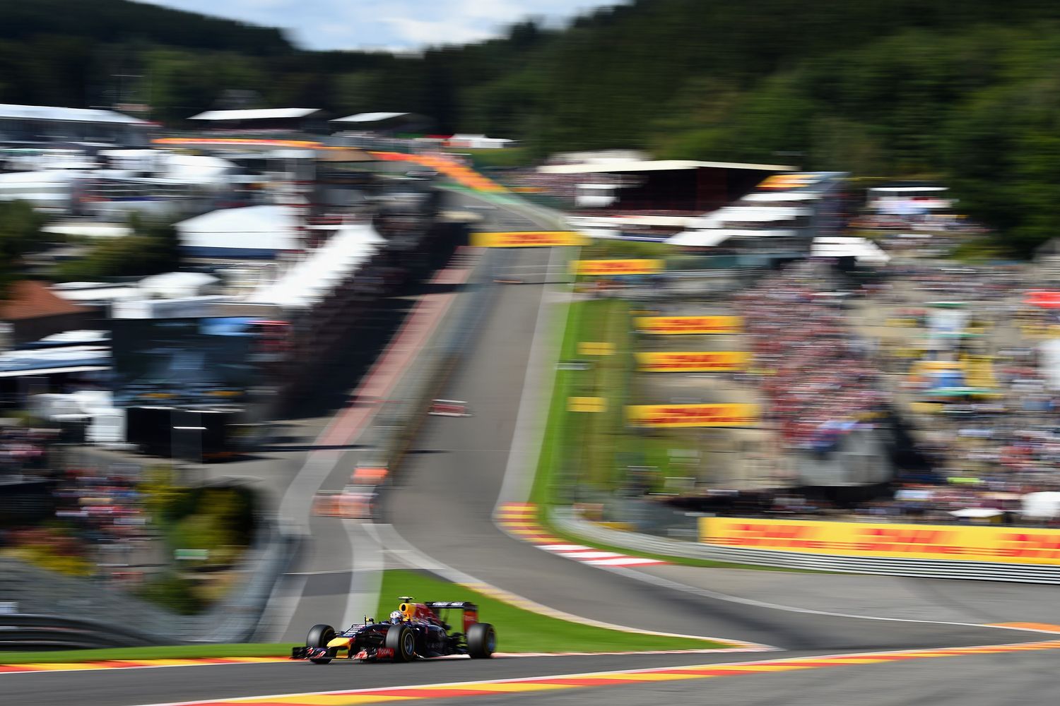A félelmetes Eau Rouge-ból kifelé az egyenes végén volt, hogy közel 340-et mentek – pláne azok, akik szélárnyékot kaptak, s rendre előzés is lett a dologból