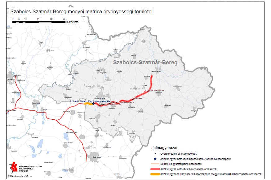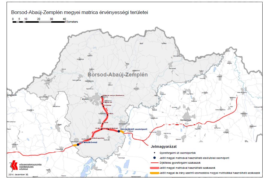 „Jelentősen csökkennek az autósok úthasználati költségei 2015-től a megyei matricák bevezetésével. – e felütéssel jelent meg a 2015-ös útdíj ismertetése a Nemzeti Útdíjfizetési Szolgáltató Zrt. (NÚSZ) weboldalán december 30-án 21:55-kor. Időben, hiszen a Magyar Közlöny is e napon jelentette meg az útdíjfizetési rendszer módosításáról szóló, január 1-től hatályos rendeletet.
