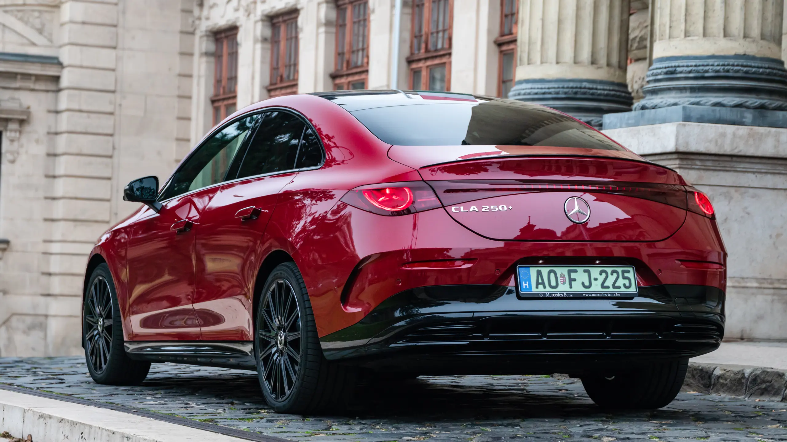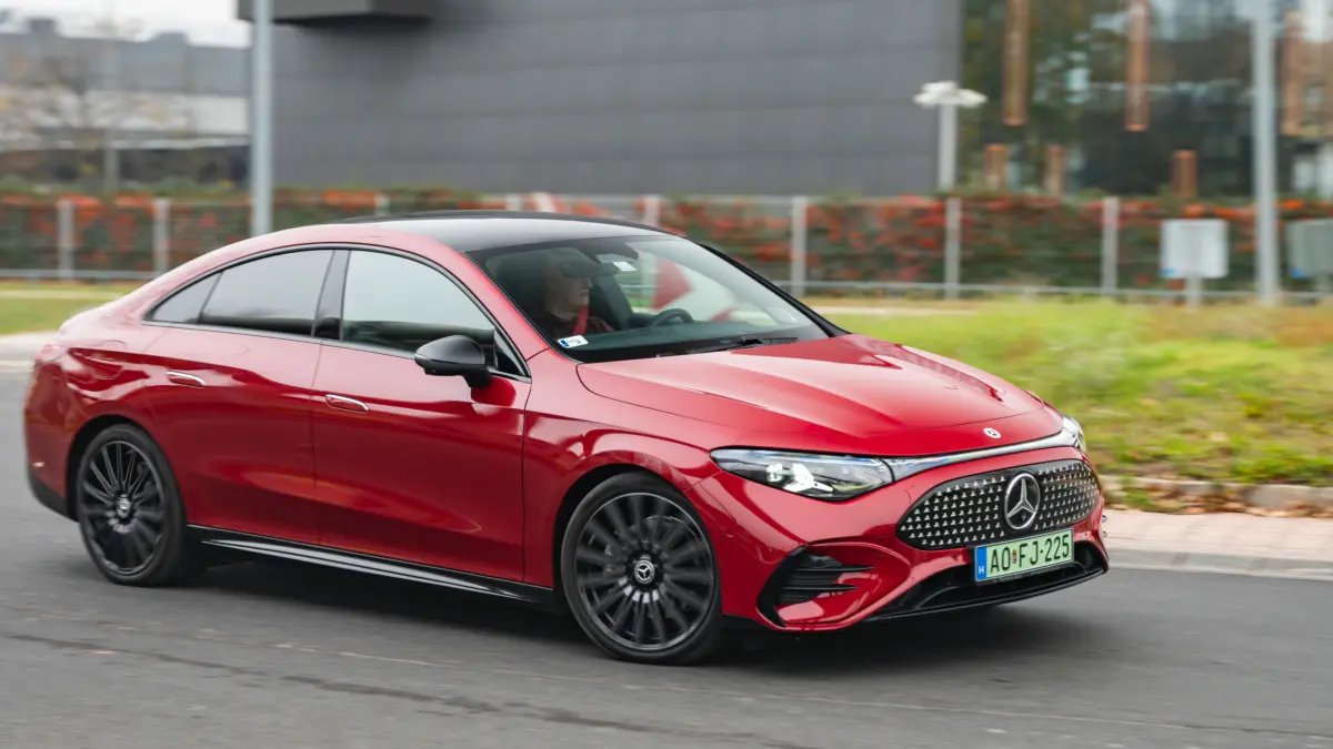 A Mercedes-Benz becsületére legyen mondva, hogy rendesen elvégezték a házi feladatot. Fejest ugrottak a villanyosításba, de a csobbanás egy kicsit fájdalmasra sikerült. A mindenféle EQ betűkombóval kezdődő típusok bár tényleg élen jártak a modernizációban, mégsem arattak maradéktalan sikert, amit hiába is tagadna bárki, mert az eladási adatok megmutatják az igazságot. Szerencsére nem söpörték a szőnyeg alá a problémákat és nem is szakítottak a villanyosítási tervekkel, csupán józanabb mederbe terelték annak ütemezését. Az átgondoltabb stratégiának pedig máris itt az első gyümölcse, a CLA, amely nem csak és kizárólag villanyautó lehet, de nálunk most az járt. Méghozzá a nagyobb akkumulátorral, amit a + jel érzékeltet a modellnévben a szám után. A teljes neve ugyanis CLA 250+ EQ Technológiával. Bizony, nem hagyták el az EQ jelölést, de ez most már arra szolál, hogy megkülönböztesse a tisztán villanyhajtású modelleket a később érkező, belső égésű motoros változatoktól. Persze ezt az autó orrán díszelgő, sötétben világító csillagokkal kirakott betét is elárulja, amit a laikus szemlélő hűtőmaszknak nézhet, de a levegő valójában csak a sportos lökhárító alsó részén jut be. Sportos, mert AMG csomagos volt a tesztautó, ami 19 colos felniket és többek között fekete tükörházakat is eredményez a fekete küszöbök és a hátsó lökhárító díszbetétje mellett. A dizájn egyébként tényleg magával ragadó. A CLA továbbra is megmaradt egy gyönyörű kupé-limuzinnak, ami már-már kinövi az alsó-középkategóriát, hiszen 4,723 méter hosszú, 1,85 méter széles és 1,47 méter magas, miközben a tengelytáv 2,79 méter.  A kor divatjának megfelelően elöl a Mercedes embléma is világít, ahogy körülötte a 147 csillagocska is, de az első Multibeam LED-fényszórókban is ott a csillag nappali menetfényként, valamint a hátsó lámpatestekben is, amelyeket teljes szélességben végigfutó fényhíd köt össze. A 15 perc hírnév garantált, és hiába fanyalogtak néhányan, hogy ez már túl sok, túl csicsás, az emberek többségének tetszett ez a megoldás, amit valószínűleg az eladási statisztikák is igazolni fognak. Szintén érdemes megemlíteni, hogy 0,21 a légellenállási együtthatója. Bent igazi prémium hangulat fogad. Igényes, kellemes tapintású anyagok mindenhol, és ami nagyon fontos, hiba nélkül összerakva. Nincsenek zörgések, nyöszörgések, elengedő ragasztások, varrások. Erre most már nagyon odafigyeltek, minden azt a precizitást tükrözi, amit elvárnak a Mercedes ügyfelei, akkor is, ha „csak alsó-középkategóriában vásárolnak. A műszerfalat a két nagy képernyő uralja. A vezető előtti 12,25 colos nagyon szép grafikával és éles képpel, az infotainment érintőképernyője pedig 14 colos, a menürendszer csak elsőre kacifántos, néhány óra alatt már minden magától értetődő lesz. Az utas előtt szintén ott egy 14 colos felület, ami a tesztautóban csak hangulatvilágítást kapott, de oda is rendelhető képernyő, amelyen akár streaming videók, vagy játékok is futhatnak a jobbegyben ülő szórakoztatására. A multifunkciós sportkormány párját ritkítja, nagyon jó a fogása, megfelelő a karimavastagság és a haptikus kezelőfelületeket is optimalizálták, így már tényleg könnyen kezelhetők a hozzájuk rendelt funkciók. A szélvédőre vetített HUD is szép grafikájú, jó nagyok a számok és betűk, ezért könnyű leolvasni őket. A sportos bőrülések nagyszerűen tartanak és hosszabb távon is kényelmesek, a vörös biztonsági övek pedig dögösek. Hátul nincs kardánalagút, ezért a lábtér felnőtteknek is elegendő, ám a fejtér sem szűkös átlagos magassággal, hiába kupés a tetővonal, valamint a hatalmas, alapára panorámatető sem ront ezen. Sőt, ez utóbbi a hátsó utasok számára tényleg nagyszerű látvány. A csomagtér hátul 405 literes, és igyekeztek minél nagyobb nyílást vágni neki, de az ajtó az üvegfelület nélkül nyílik, így itt lehet hogy néhanapján kompromisszumot kell kötni a berakodásnál. Ugyanakkor az autó orrában is hatalmas tárolórekesz vár 101 literes kapacitással. A hosszú utakon is kényelmes üléseket azért is volt fontos megemlíteni, mert ez a villanyautó bizony tényleg nagy hatótávolságú. 85 kWh kapacitású nikkel-mangán-kobalt akkumulátor tárolja az energiát, ami WLTP szerint maximum 792 kilométeres hatótávot enged. A valóságban nekem 500 kilométert sikerült megtennem vele egy feltöltéssel, vegyes használatban, így ugyancsak átlagos felhasználási igények mellett képes kiváltani egy benzinmotoros modellt. Átlagosan 18 kWh/100 km fogyasztással tudtam vele közlekedni, oszlopról 11 kilowattal töltött, de idén érkezik a 22 kilowattos változat, villámtöltéssel akár 320 kilowattot is fel tud venni, amennyiben ideálisak hozzá a körülmények. A villanymotor a hátsó kerekeket hajtja, 272 lóerő és 335 Nm forgatónyomatk társaságában .Az értő közönség ebből már sejtheti, hogy itt bizony már ténylegesen sportos vezetési élményt kaphatunk és kapunk is, amit nagyon ritkán érzek korunk villanyautóinál. Persze a tömeg itt is ellenség, de az alapvetően alacsony építésmód és a fergetegesen jó futómű képes elrejteni a kettő tonnás üres tömeget, sőt a rendesen felextrázott tesztautóé 2,1 tonna. Százra 6,7 másodperc alatt gyorsul, végsebessége pedig 210 km/h, ha valaki a német autópályákon szeretné gyorsan lemeríteni. De lényeg a kényelem és a kanyartulajdonságok. Egyrészt, ha figyelmen kívül hagyod az AMG géneket, akkor egy rendkívül nyugis közlekedési eszköz is tud lenni az elöl MacPherson, hátul többlengőkaros futóművel. Persze a nagy felni-peres gumi kombó a hazai utakon azért ne