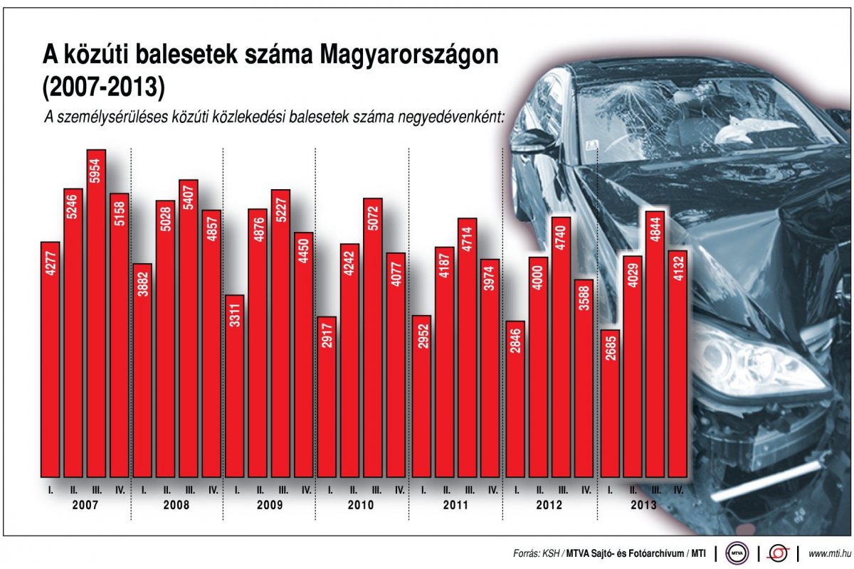 A halálos balesetek száma 2013 ugyanezen időszakához viszonyítva 27,36 százalékkal emelkedett (95-ról 121-re), 2004 első negyedévéhez viszonyítva azonban a felére csökkent (242-ről 121-re).