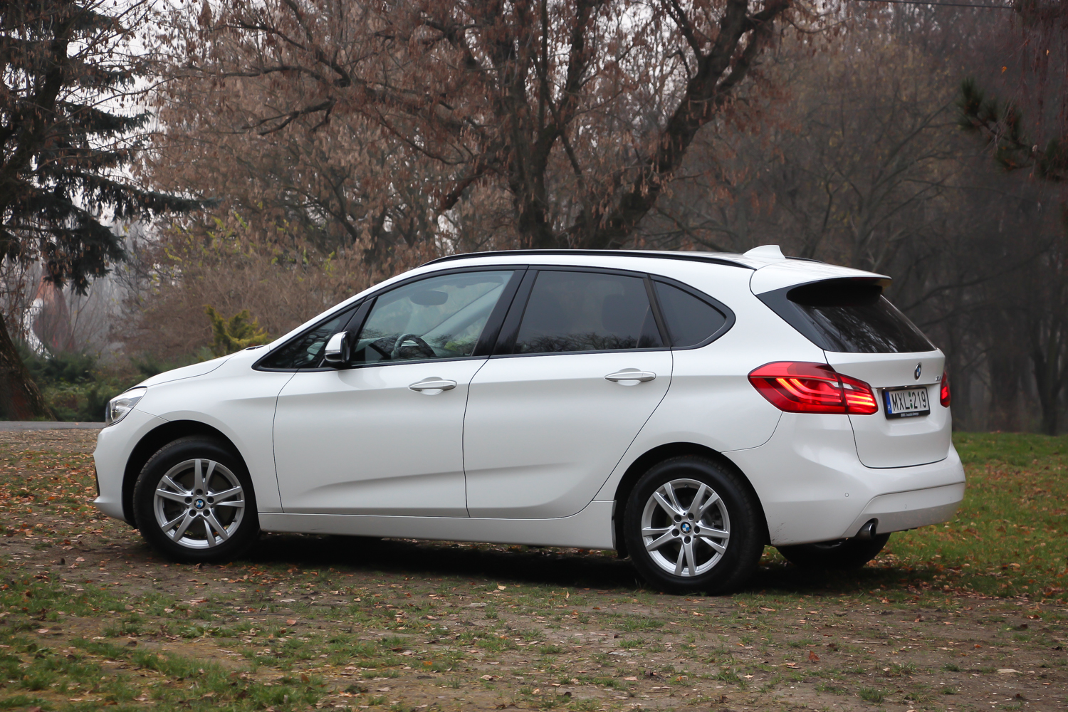Családinak sportos. Még akkor sem vérzik el, ha más BMW-khez hasonlítjuk. Egyrészt ott a beltér, aminek a minősége simán hozza az előző 3-as sorozat szintjét, vezetni meg a magas üléspozíció ellenére is majdnem olyan jó, mint a Minit. Bizony, az ugyanezzel a háromhengeres turbós motorral szerelt Cooper (ott a specifikáció szerint 4000-ig tudja a maximális nyomatékot) tényleg sportos, vele a 2-es igaz csak nagyon megy, de összességében mégis talán ma ő a kategória legjobban vezethető autója. Na de ki akar jót vezetni egy kompakt egyterűben? Az, aki emiatt kért a céges keretből Peugeot 5008-ast a VW Touran helyett. A 2-es a független hátsó felfüggesztésével, a közvetlen kormányával és a BMW szinten nem a legjobb, de kicsit akadósan is rövid úton járó váltójával meg ma a sportos családapák és anyák legjobb választása. Autópályán közben csöndes és keveset is forog: a 130-hoz 2750-es motorfordulat és 64 dB mért beltéri zaj jut.