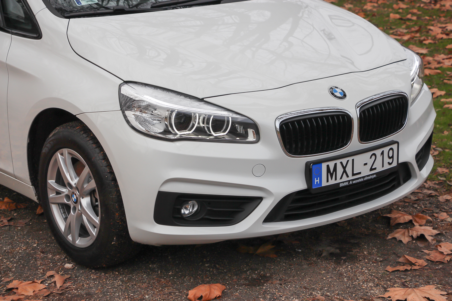 Súlyos pénzek. 7,3 milliós alapáron mit kapunk akkor? Az F45 kódú 2-es Active Tourer már alapáron is egy jó kocsi, de ezért a pénzért csak a közvetlen kormányt, a feszes futóművet és a mai mezőnyben nagyon jó, de műanyag érzetű kéziváltót adják. Nem hogy vezetéssegédek, de még ködlámpa sem jár ennyiért, szerencse, hogy az USB csatlakozó már alap. A tesztautó nem volt csúcsfelszerelt, de már Advantage csomagos, benne multikormánnyal, tolatóradarral, automata klímával, tempomattal és az inkriminált ködfényszórókkal. Hogy ára majd elérje a 10 milliót, került bele még navigációs rendszer, ledes fényszóró és elektromosan nyitható csomagtérajtó is. Így sem nézett ki úgy, mint a karácsonyfa, de ha valaki belendül egy automata dízellel például nem nehéz 15 millióig srófolni a kasszánál fizetendő végösszeget.