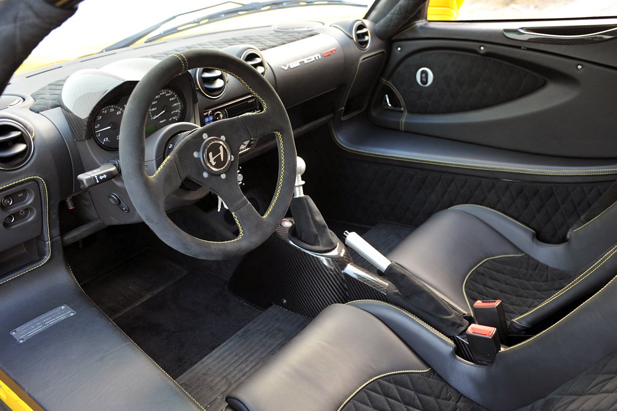 427,6 km/óra – szériában ekkora sebességre képes ma a világ leggyorsabb autója, amit úgy hívnak, hogy Hennessey Venom GT. Ez egy ránézésre Lotus Exige, de annál csöppet izmosabb és drágább amerikai szupersportkocsi: motorja Corvette-féle 7,0 literes V8-as kettő darab turbóval megbolondítva, 1261 lóerővel és 1564 Nm-es nyomatékkal, míg az ára 940 ezer euró, úgy 284 millió forint. Százra 2,7, 300-ra 13,63 mp alatt gyorsul, üres tömege 1244 kg, ijesztő.