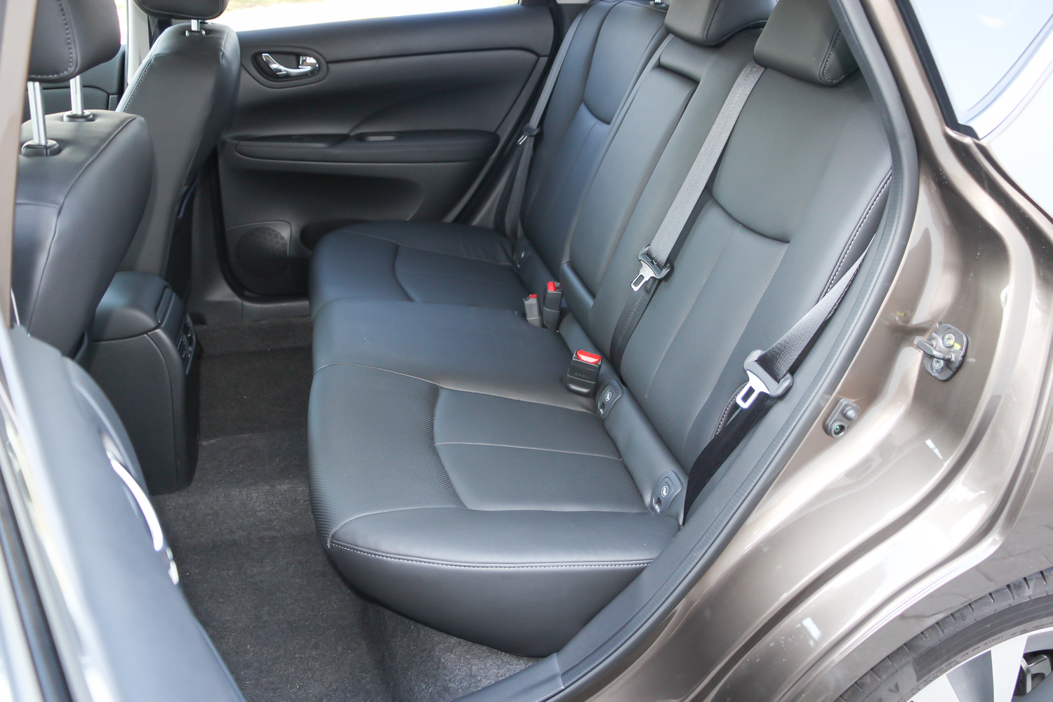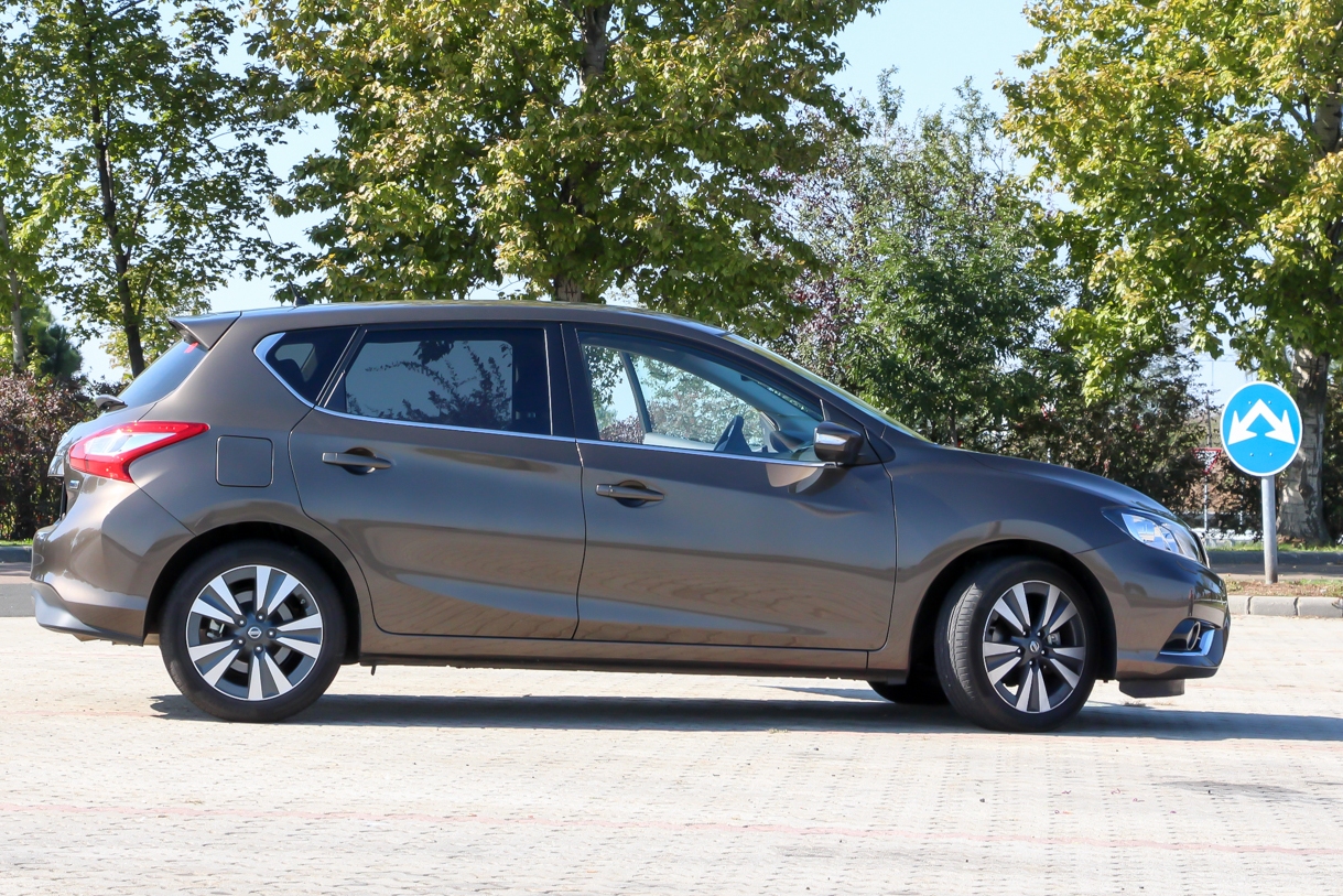 Ez utóbbi rovására kissé ráment a külső, mert az extra hosszú tengelytávval nagyon furcsák az arányai, amit a hátsó lámpák kitüremkedése és a nem túl lejtős tetőív csak fokoz. Így viszont sikerült több középkategóriás hátsó lábterénél is nagyobbat pakolni a Pulsarba, megfelelő fejtérrel és egy katalógusérték szerint nem a leghatalmasabb de, érzésre bőven jó méretű csomagtartóval. Gyakorlatilag a C szegmens Skoda Superbje lett (szemre még a Skoda Octaviáénál is nagyobb a Nissan által is a kategória legjobbjának mondott hátsó lábtér). Ha lenne belőle kombi, akkor az lenne az ideális taxi. Így meg azoknak a családoknak megoldás, ahol a szülők két langaléta kamasszal maguk mögött utaznának és a Qashqai kicsi lenne nekik. Vagy csak egyszerűen nem akarnak a magasban ülve autózni, hanem köszönik, de maradnának inkább a földszinten.